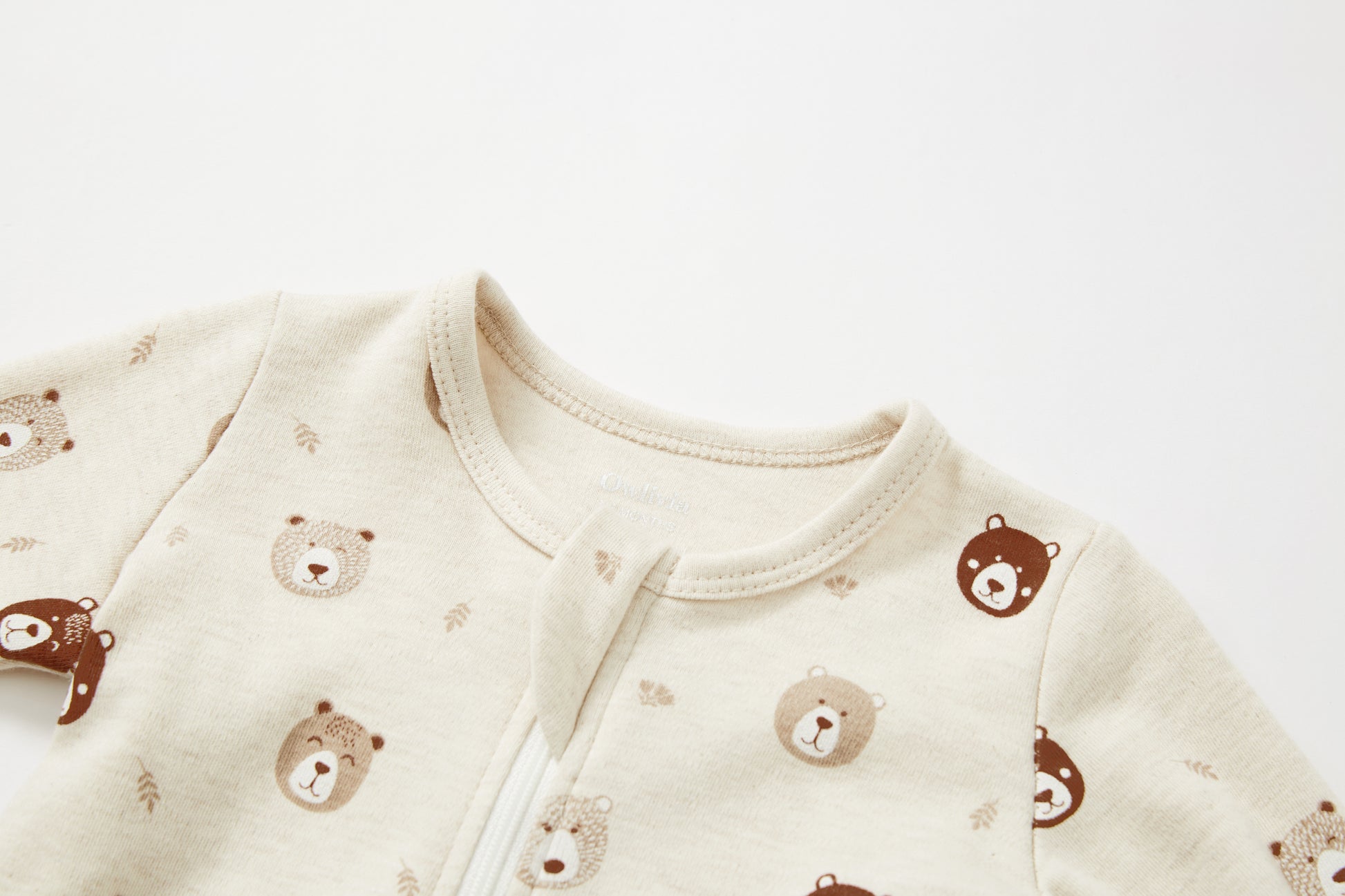 100% Cotton Footed Zip Pajamas - 2 pack - Mini Bears & Beige