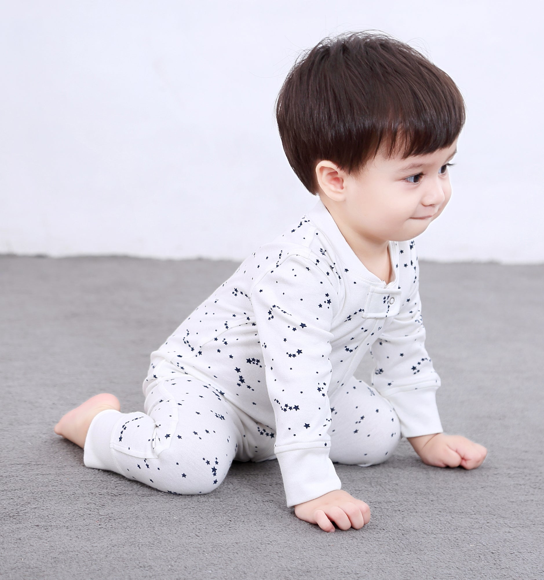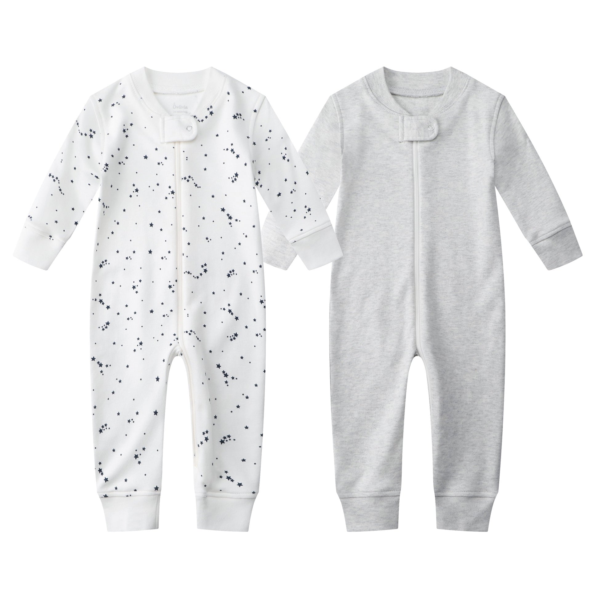 100% Cotton Footless Zip Pajamas - 2 pack - Blue Star & Gray Melange