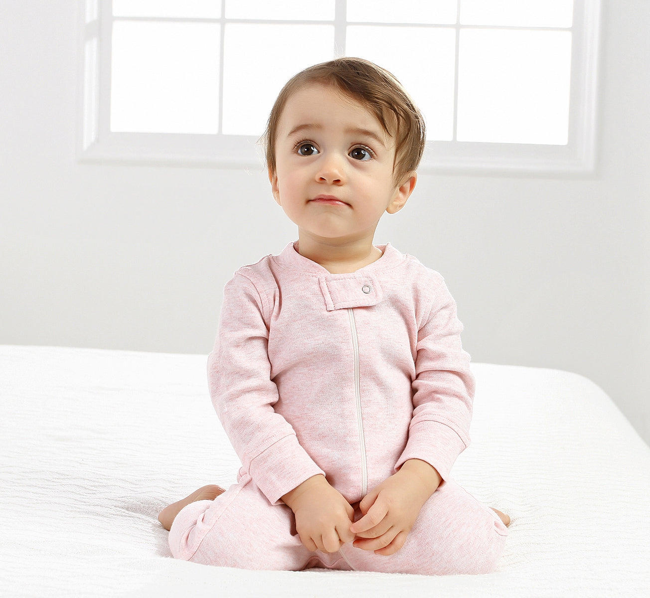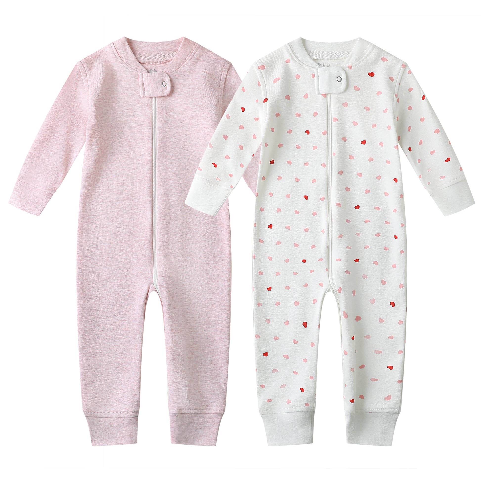 100% Cotton Footless Zip Pajamas - 2 pack - Pink Hearts & Pink Melange