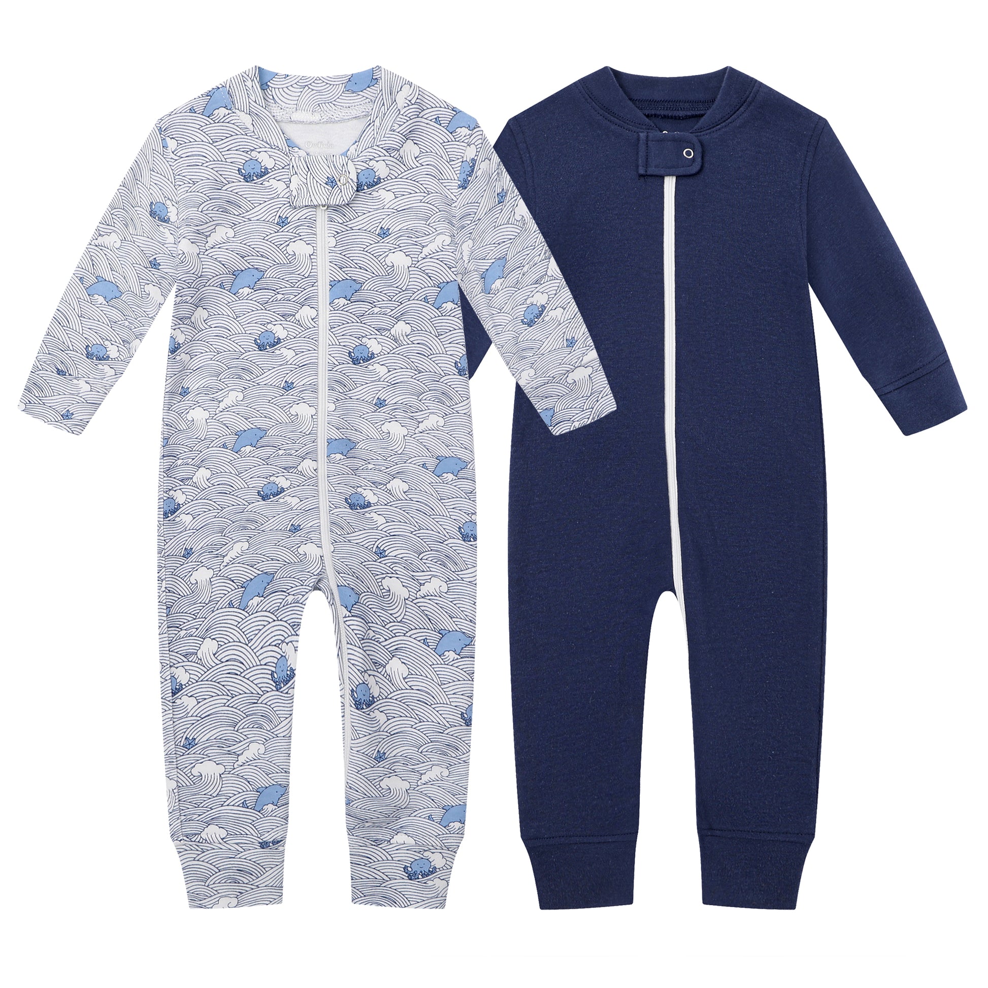 100% Cotton Footless Zip Pajamas - 2 pack - Wave & Navy