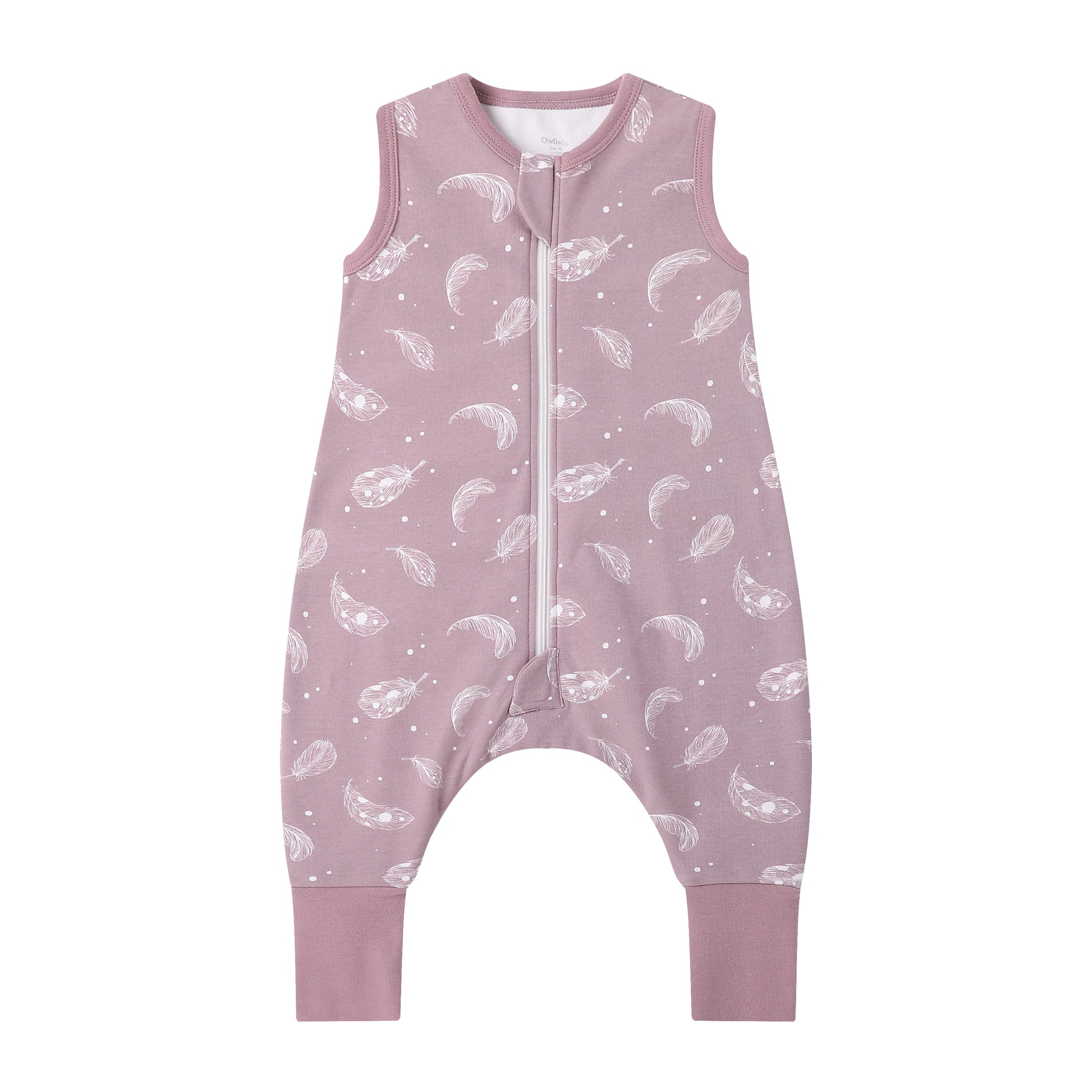 100% Organic Cotton 1.0 Tog Sleeping Bag with Legs Sleeveless Wearable Blanket- Feather Mauve