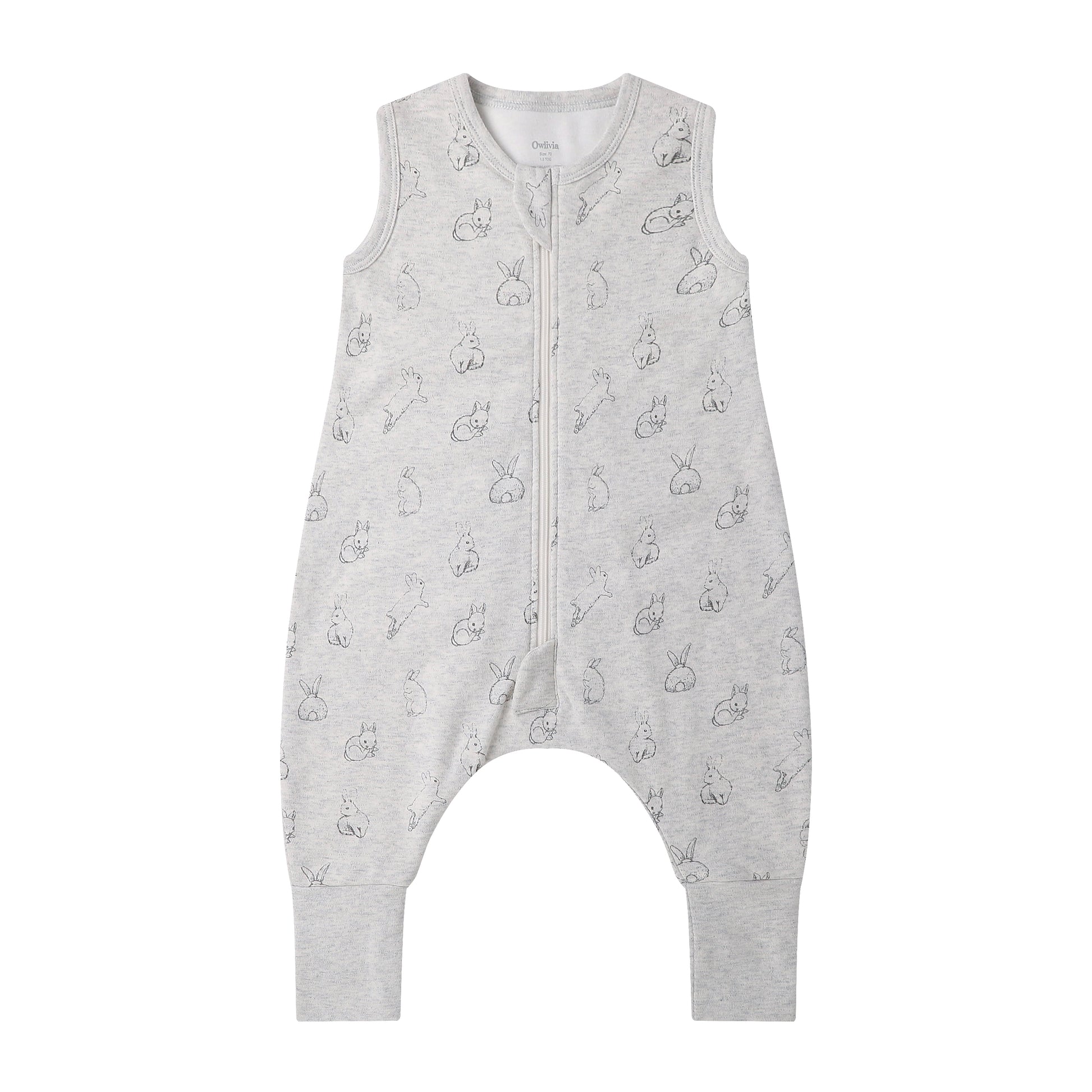 100% Organic Cotton 1.0 Tog Sleeping Bag with Legs Sleeveless Wearable Blanket- Gray Rabbit