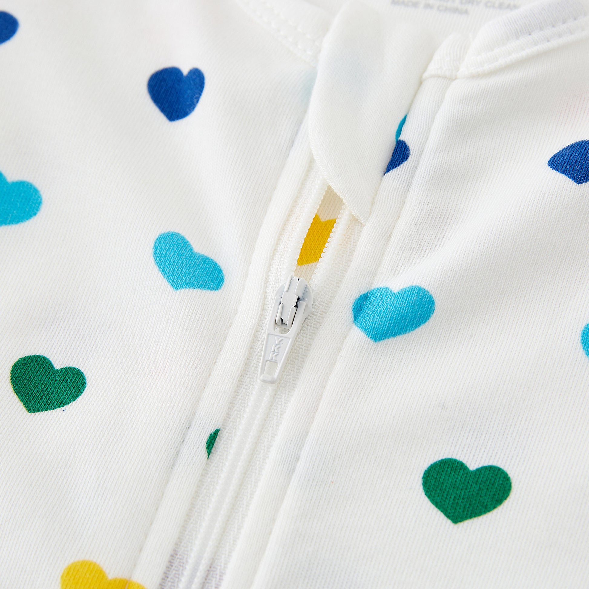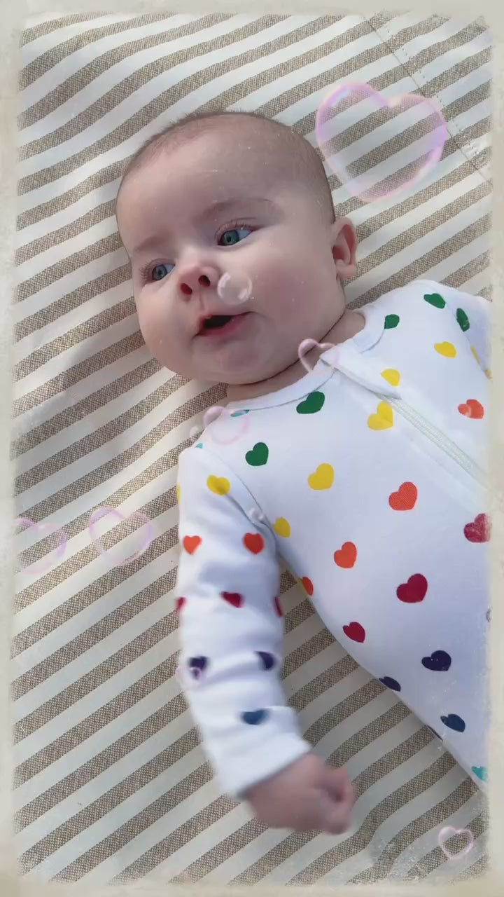 100% Organic Cotton Zip Footed Pajamas - Rainbow Hearts