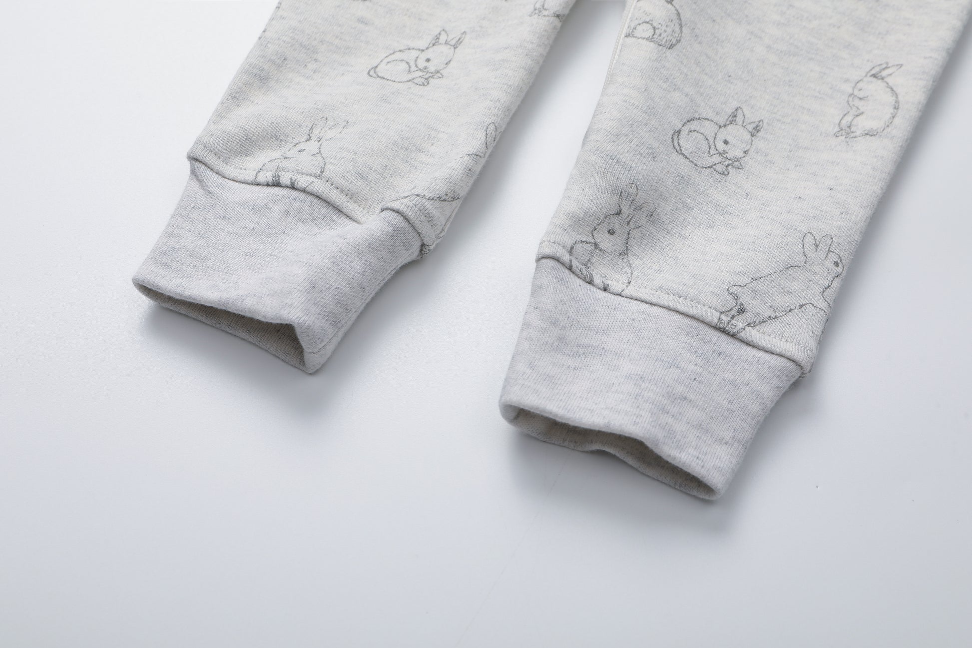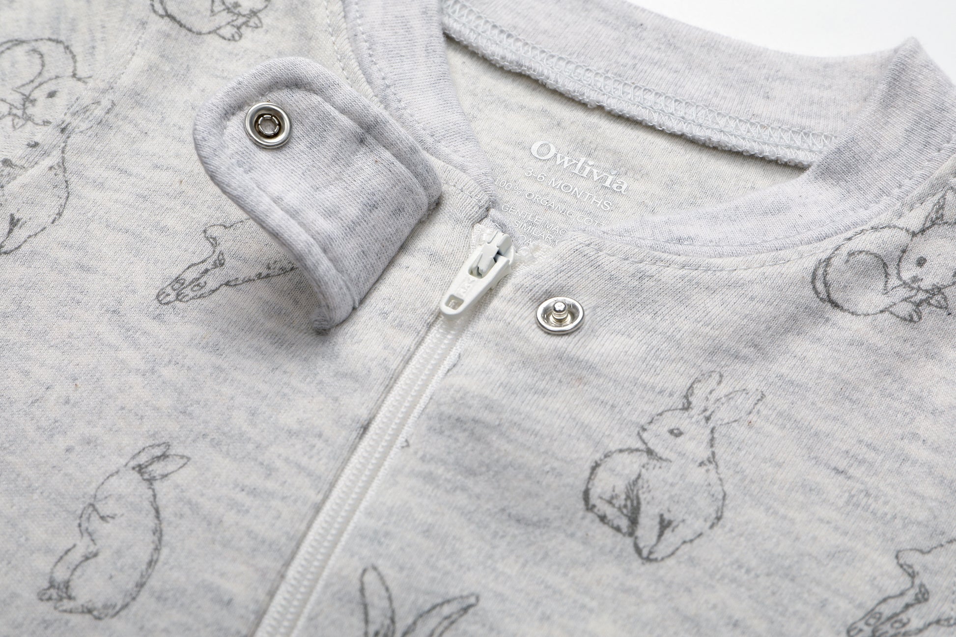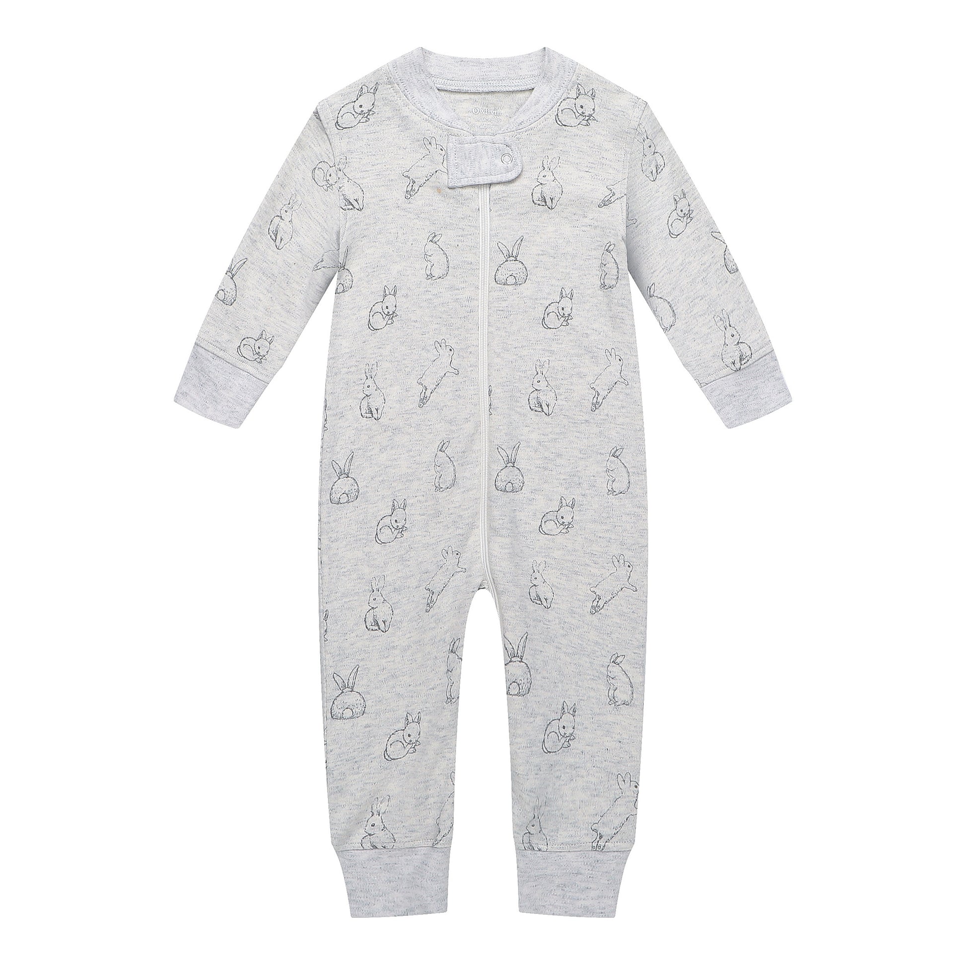 100% Organic Cotton Zip Footless Pajamas - Gray Rabbit
