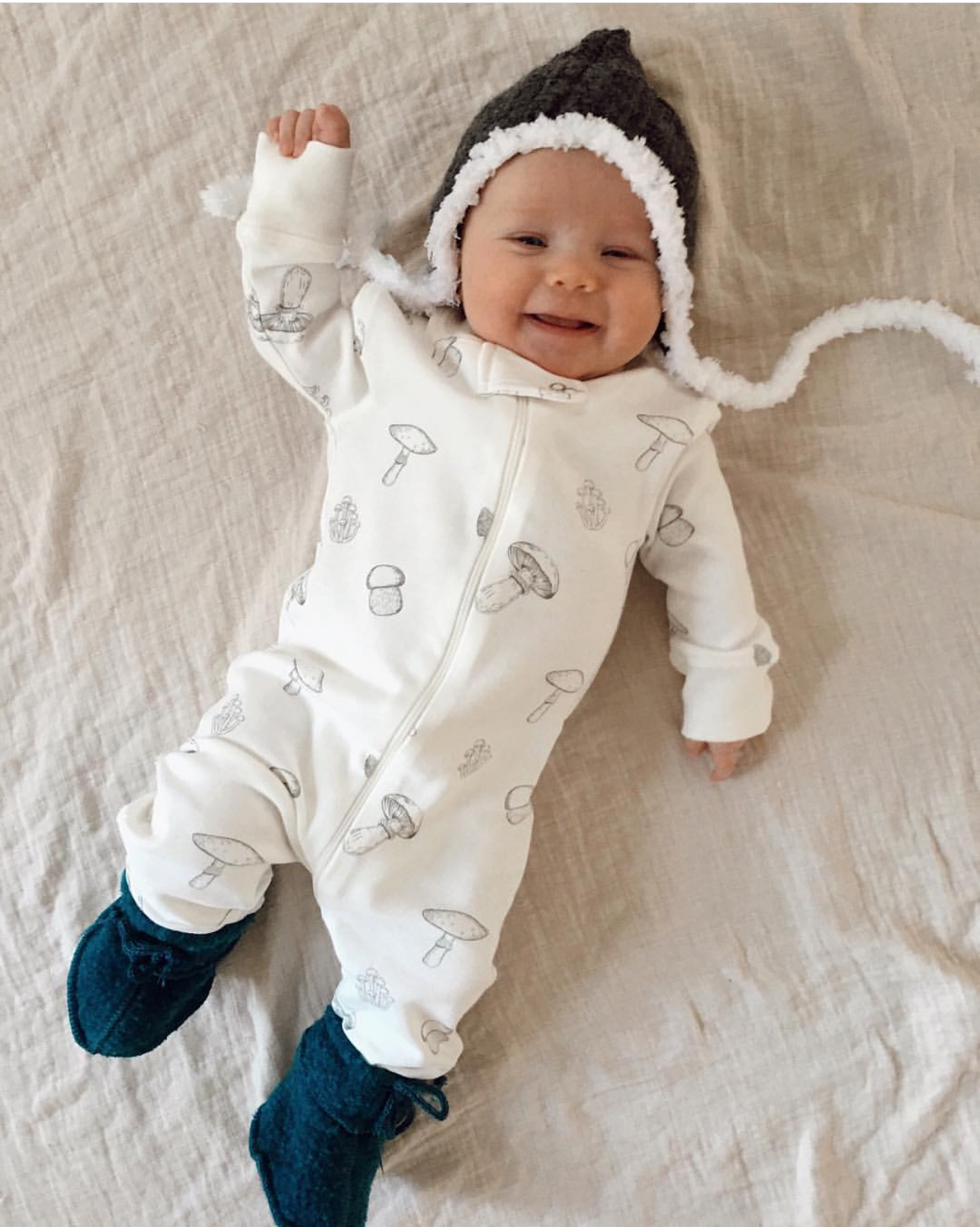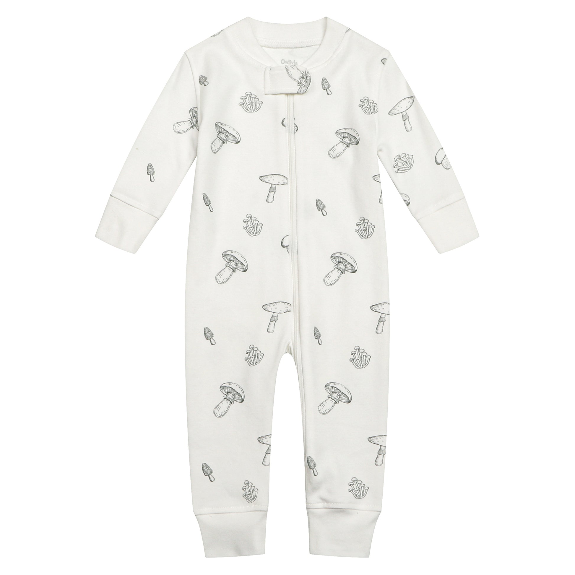 100% Organic Cotton Zip Footless Pajamas - Mushroom