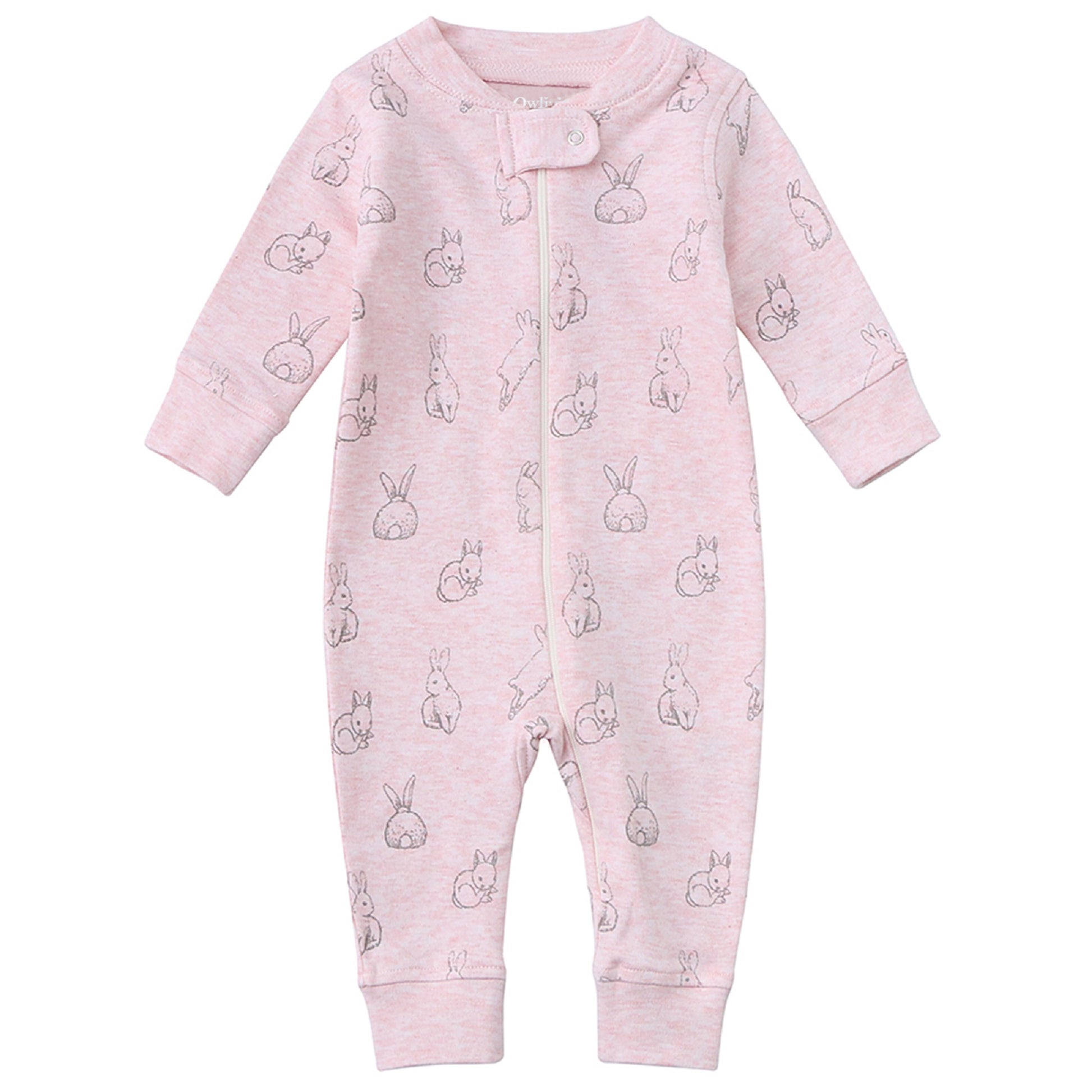 100% Organic Cotton Zip Footless Pajamas - Pink Rabbit