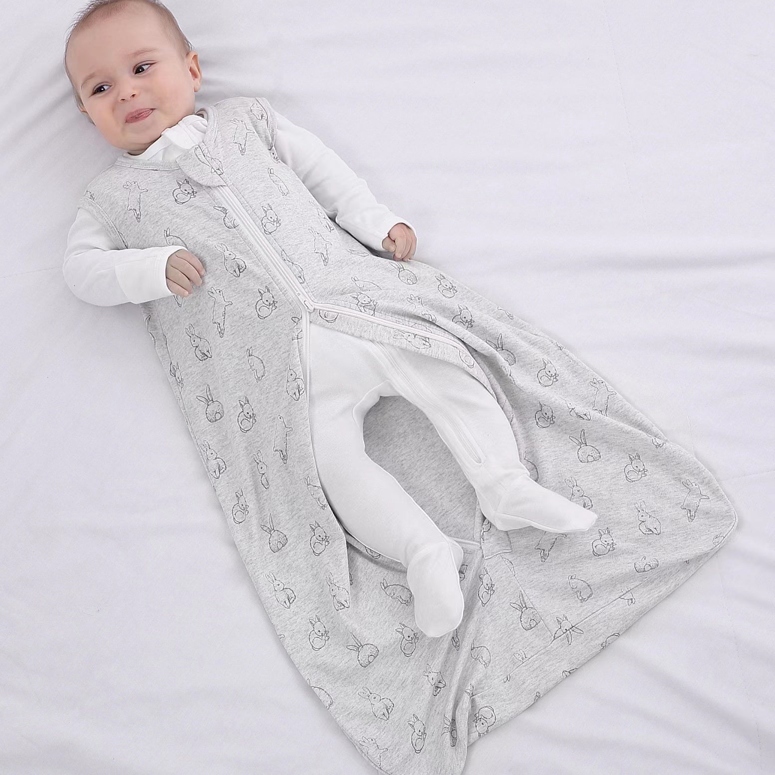 100% Organic Cotton 0.5tog Sleep Sack - Grey Rabbits