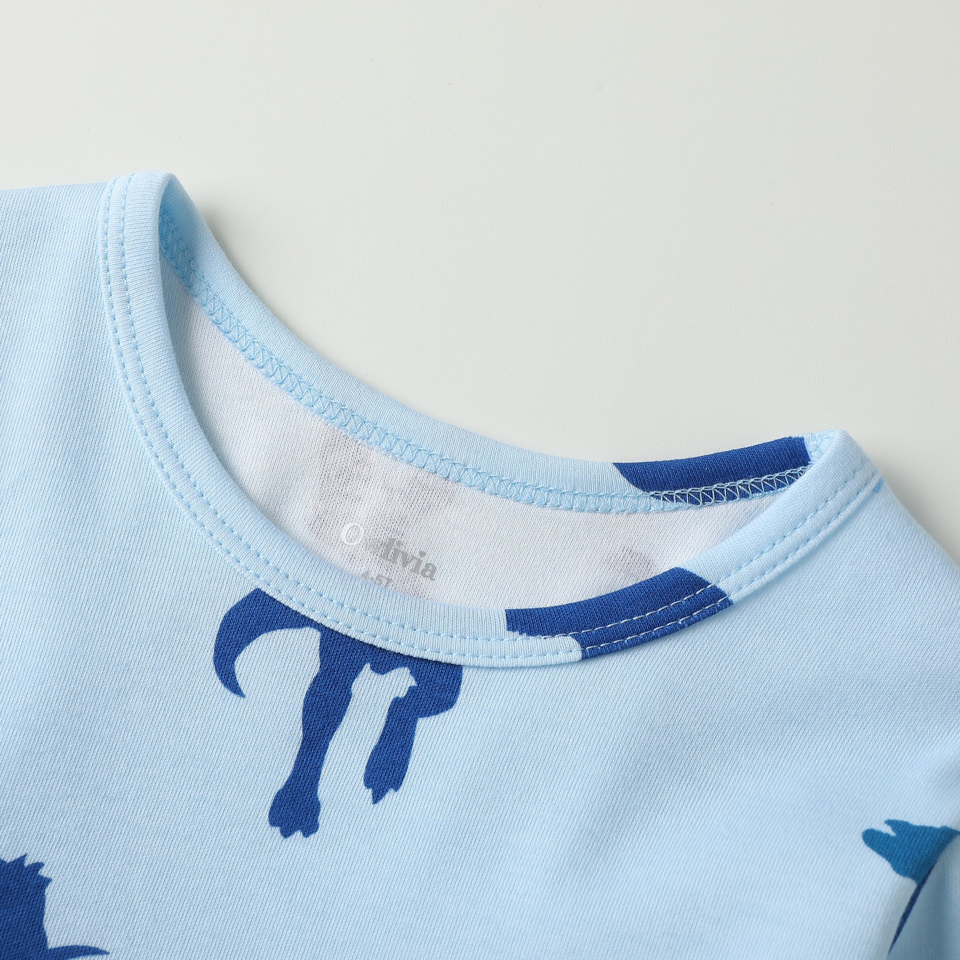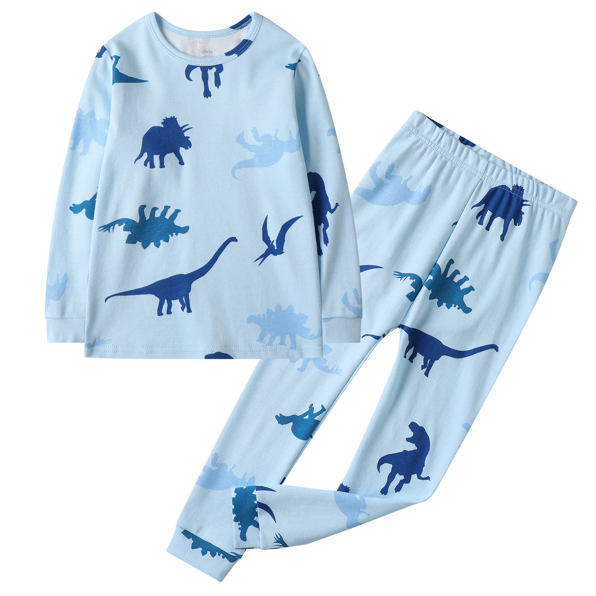 100% Organic Cotton Toddler 2 Piece Pajama Set - Blue Dinosaur