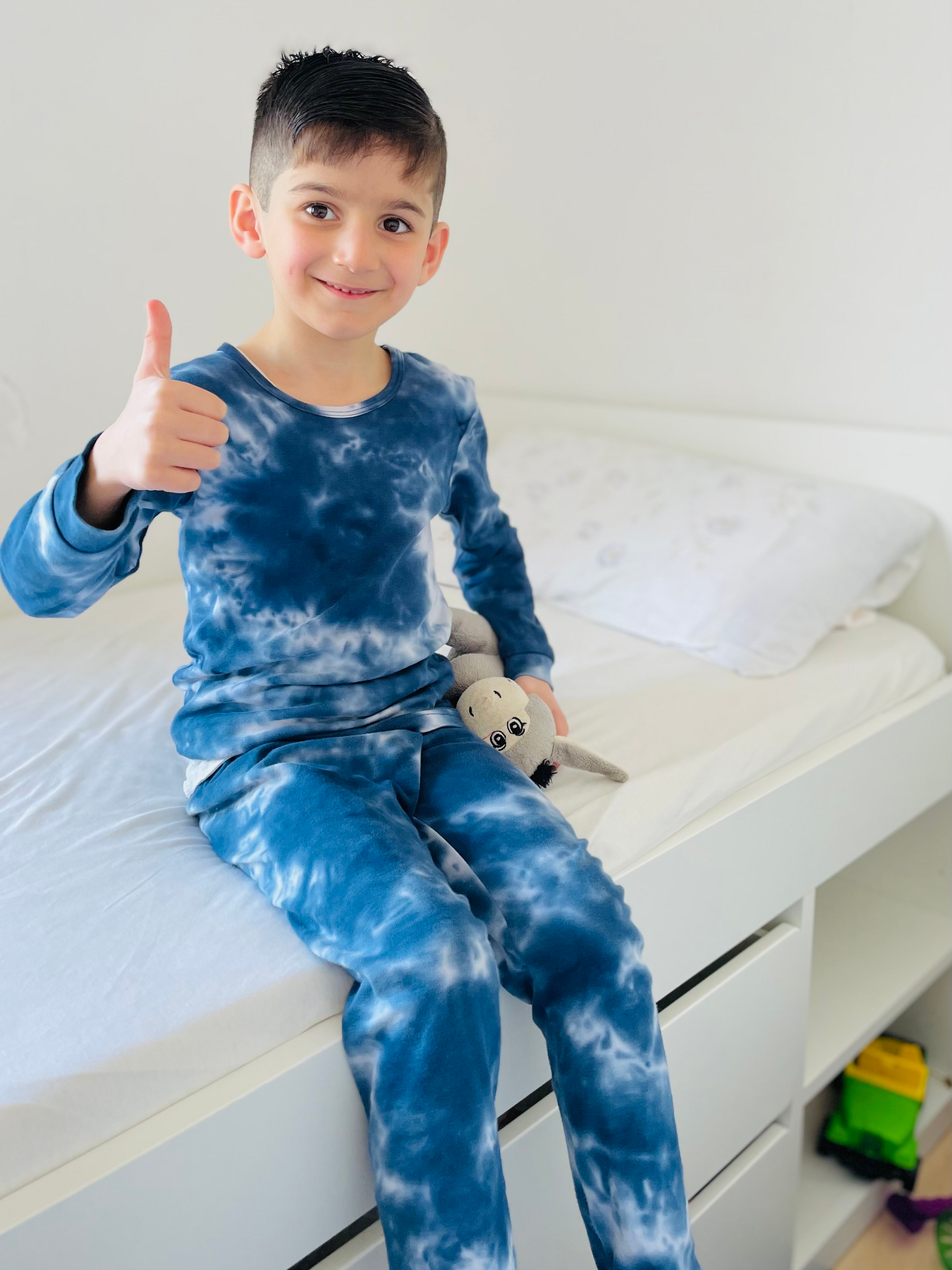 100% Organic Cotton Toddler 2 Piece Pajama Set - Dark Navy Tie Dye