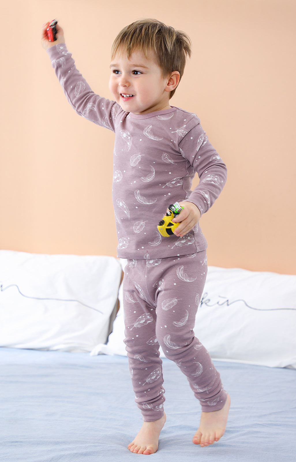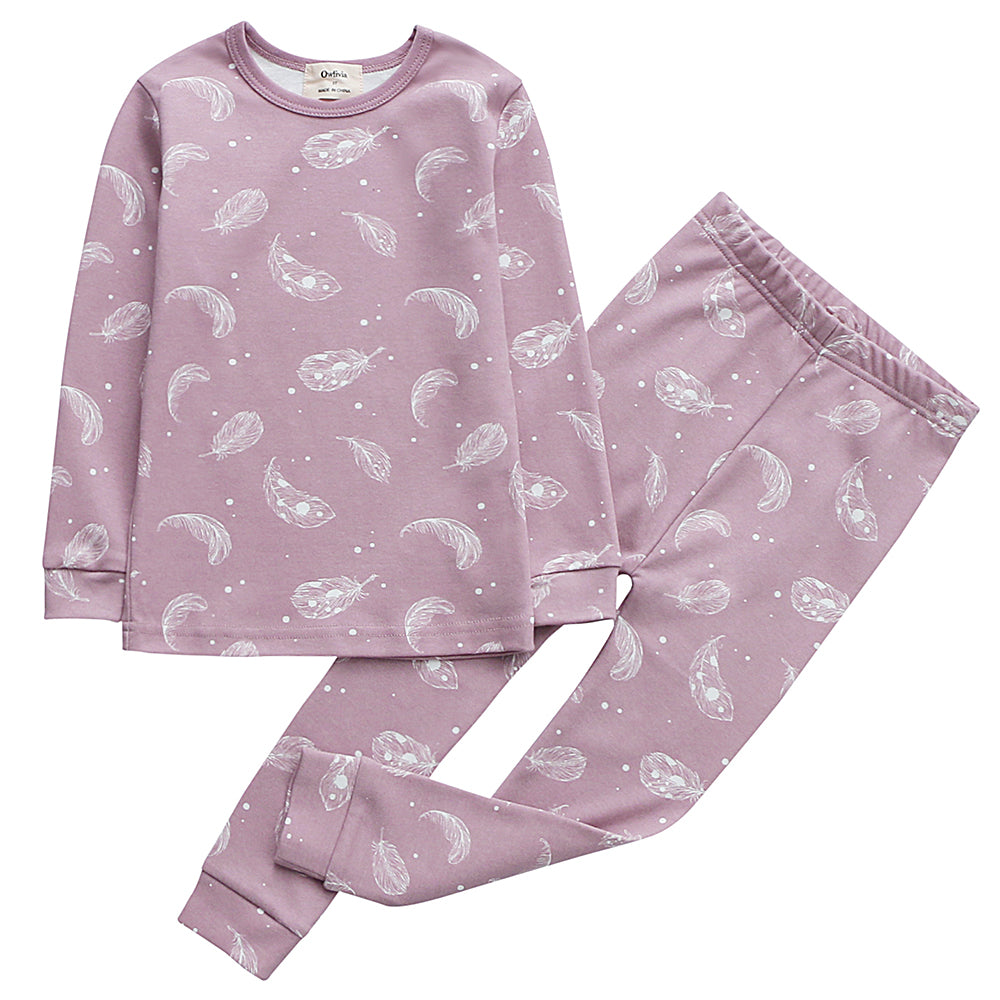 100% Organic Cotton Toddler 2 Piece Pajama Set - Mauve Feather