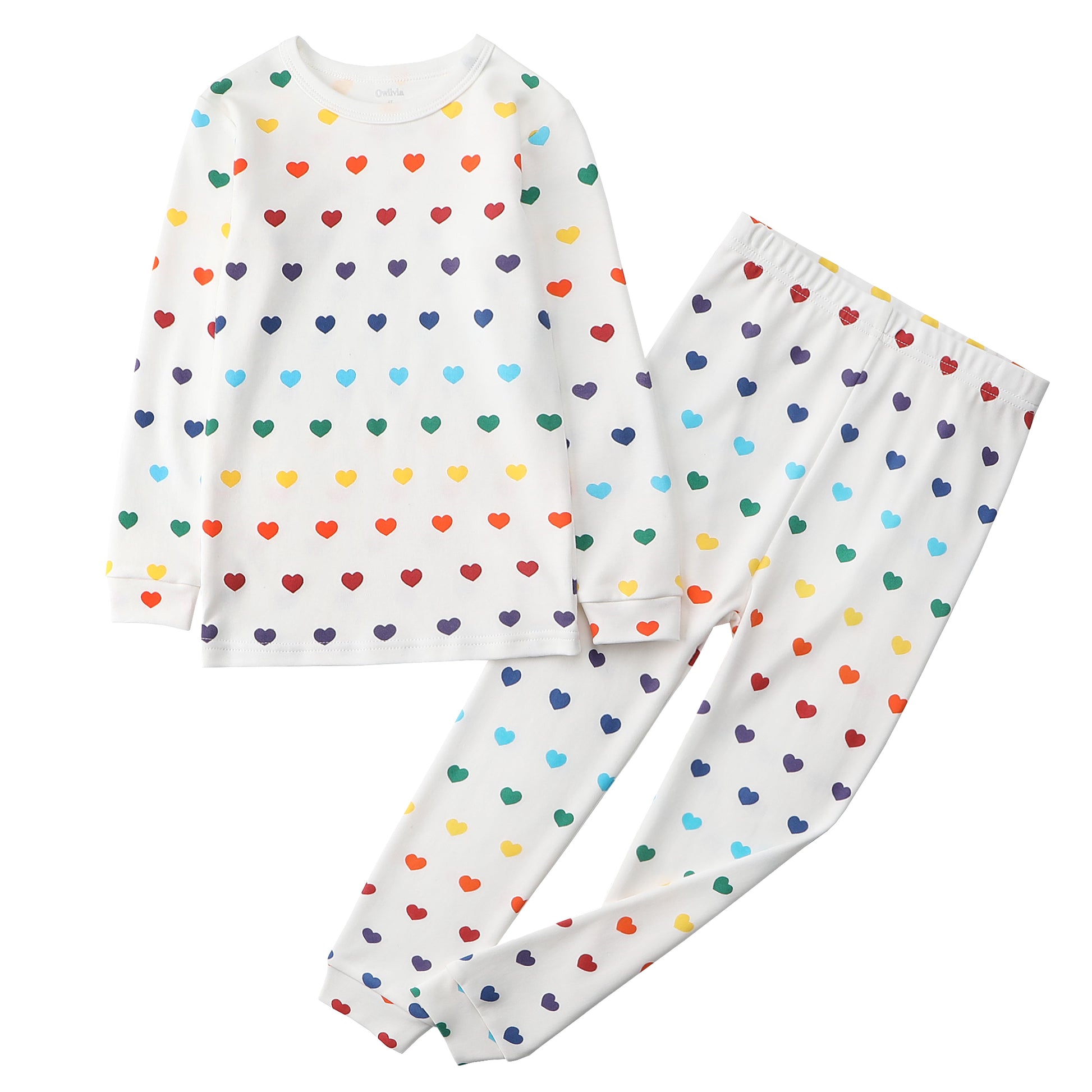 100% Organic Cotton Toddler 2 Piece Pajama Set - Rainbow Hearts