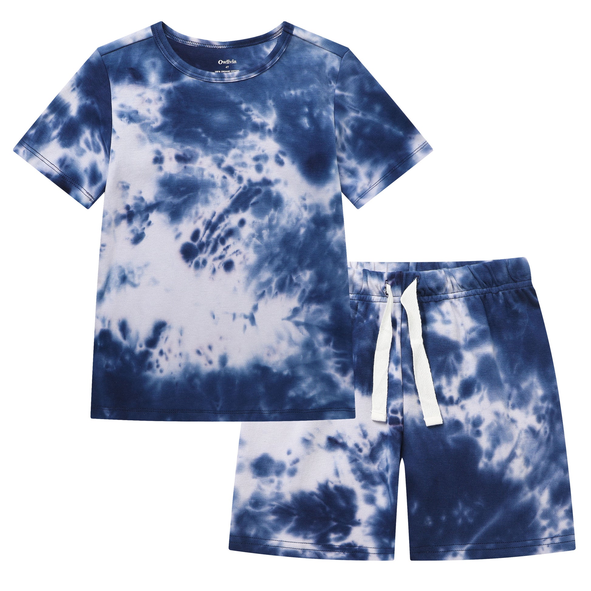 100% Organic Cotton Toddler Summer 2 Piece short sleeve Pajama Set - Dark Navy Tie Dye