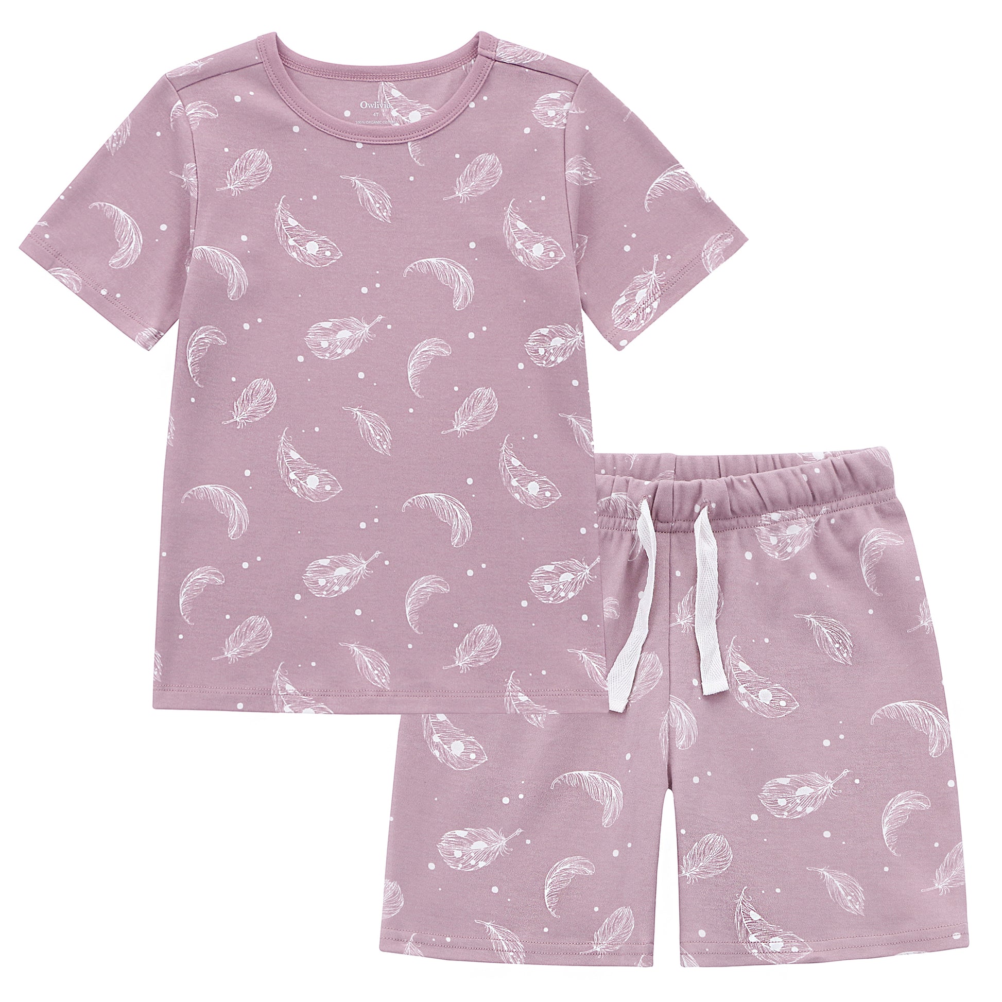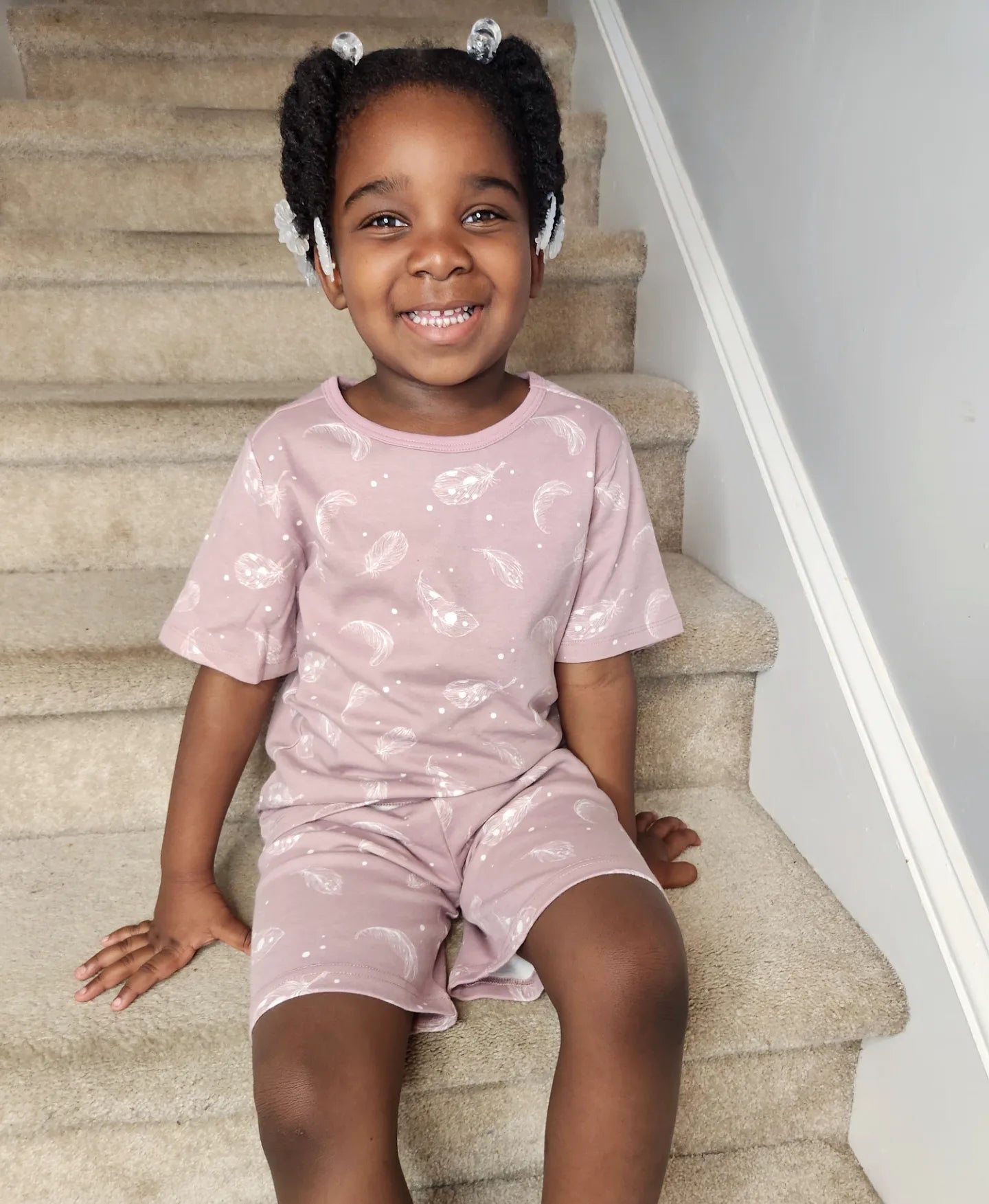 100% Organic Cotton Toddler Summer 2 Piece short sleeve Pajama Set - Mauve Feather