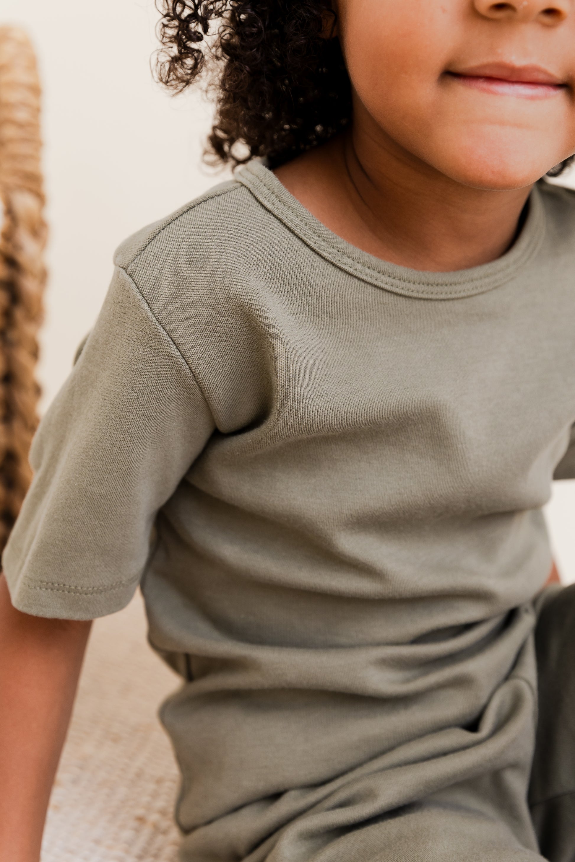 100% Organic Cotton Toddler Summer 2 Piece short sleeve Pajama Set - Olive Green
