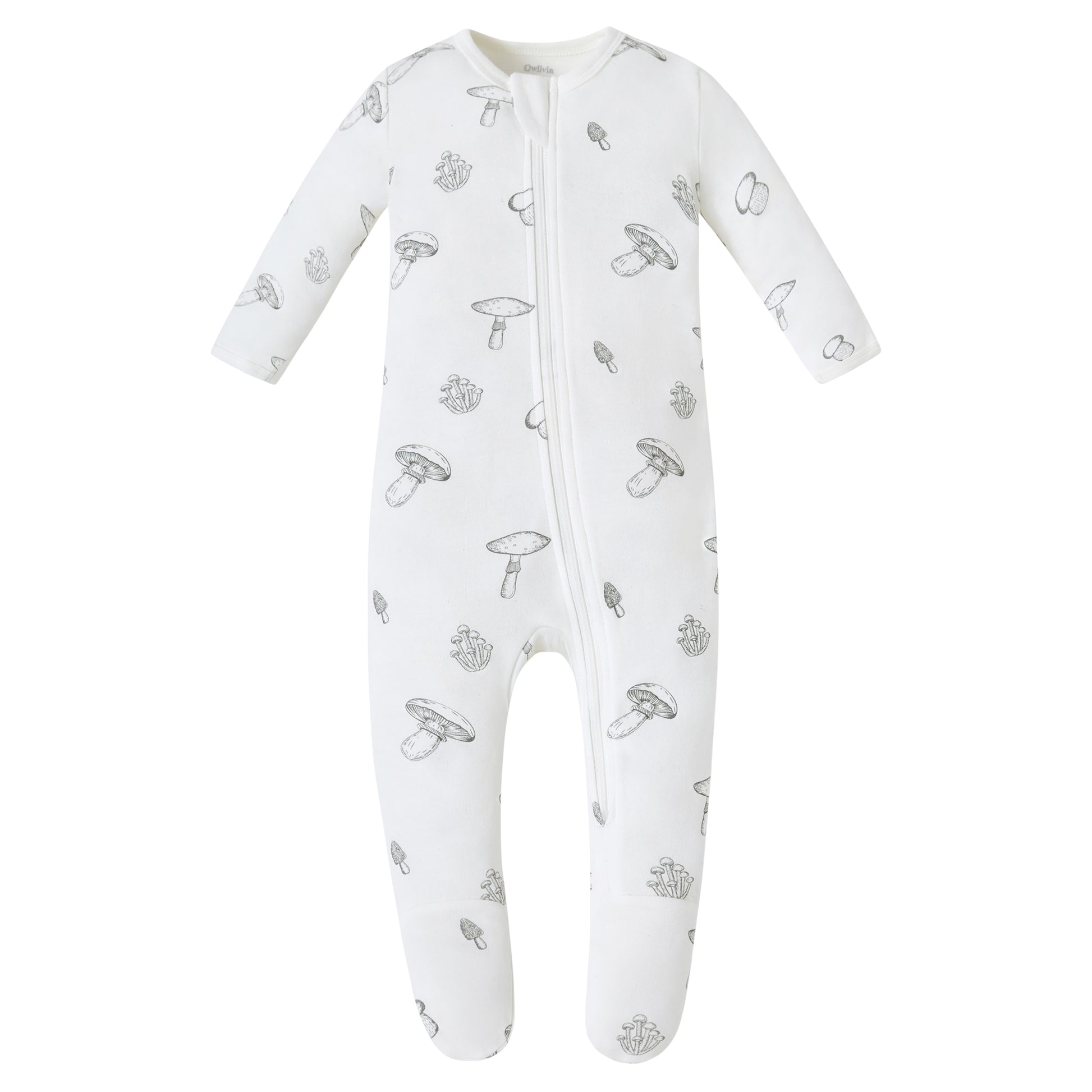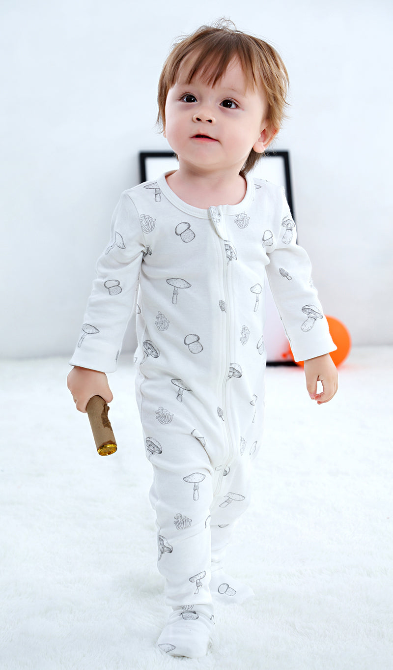 100% Organic Cotton Zip Footed Pajamas - Mushroom