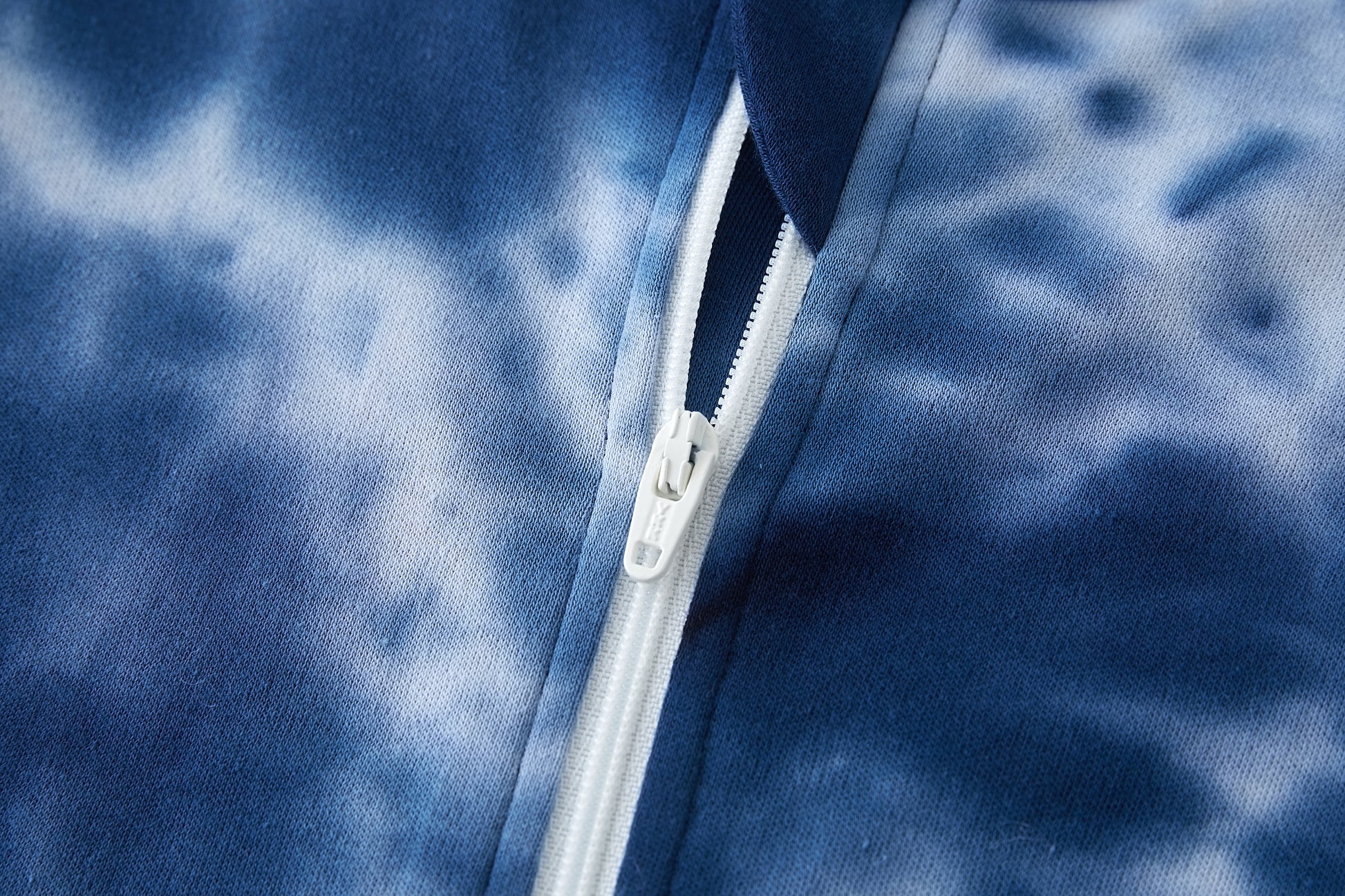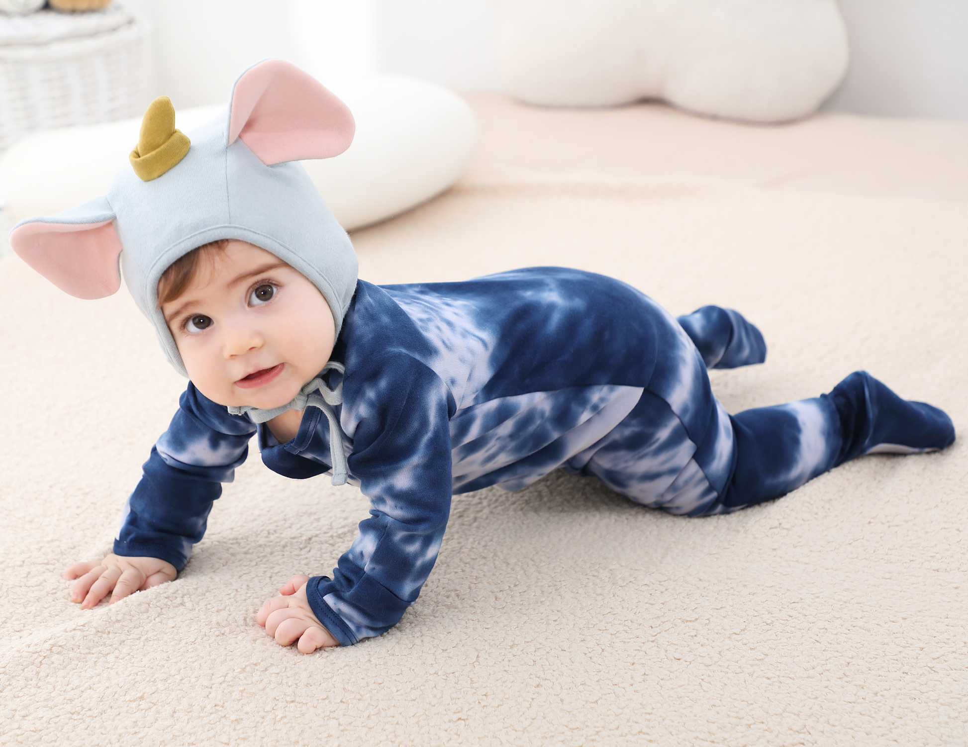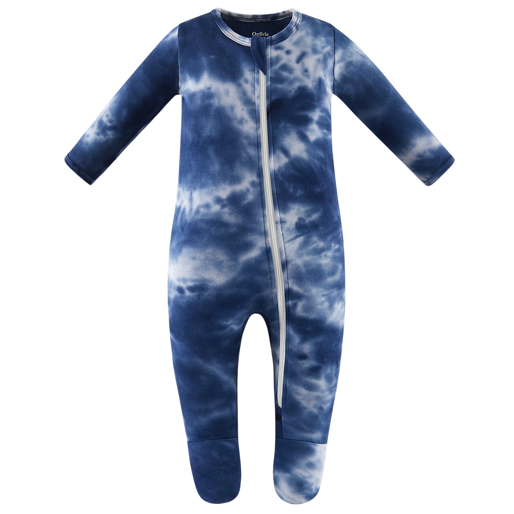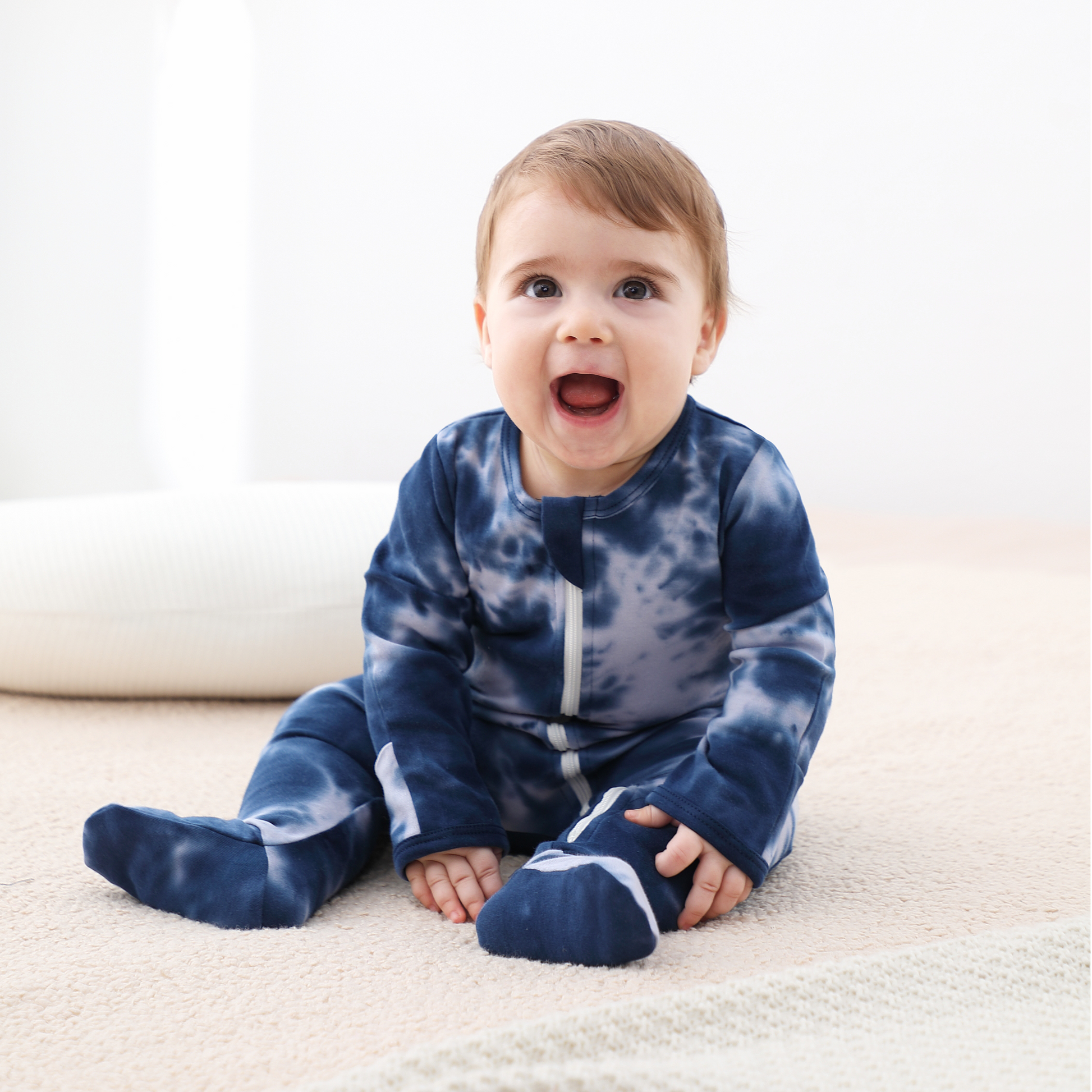 100% Organic Cotton Zip Footed Pajamas - Tie Dye Dark Navy