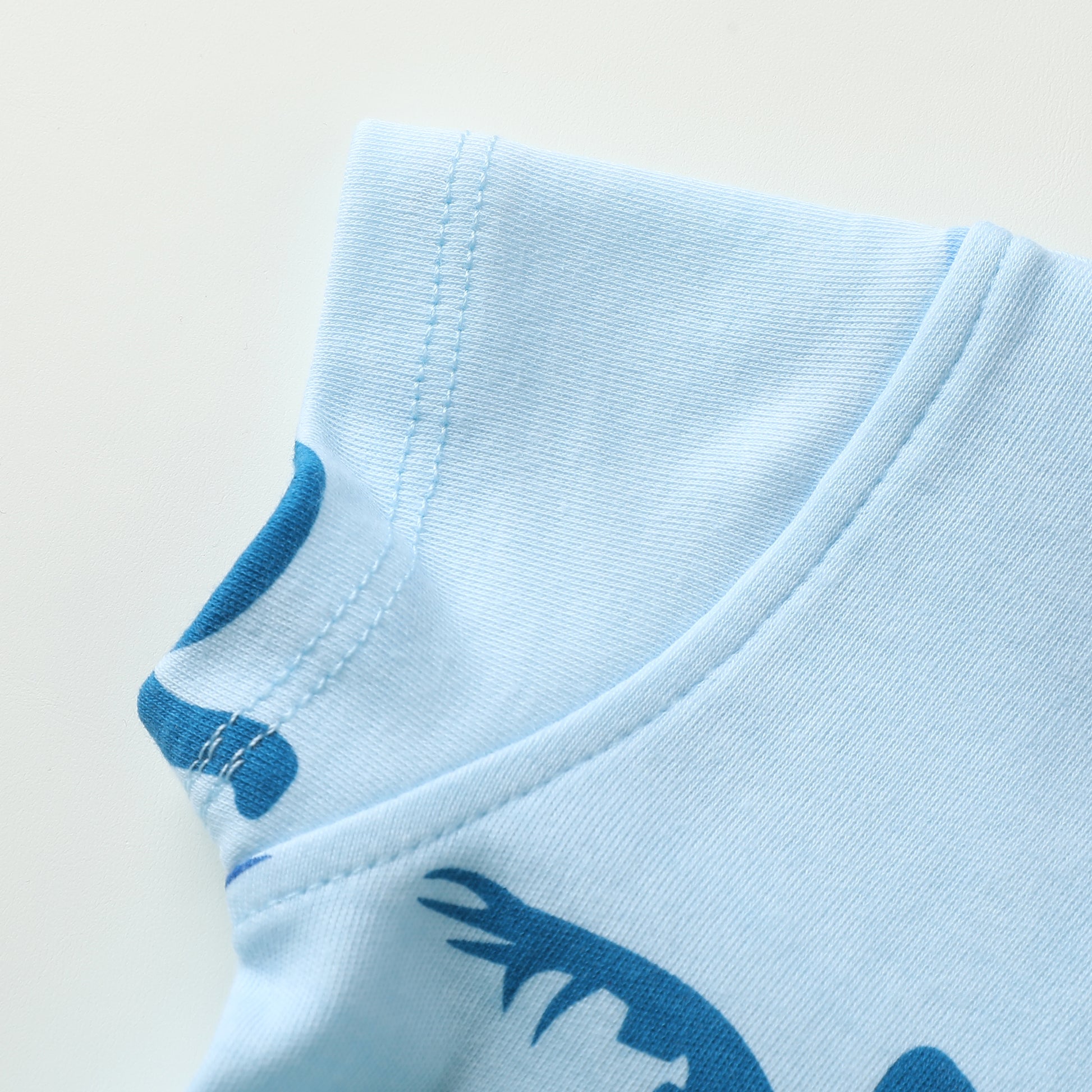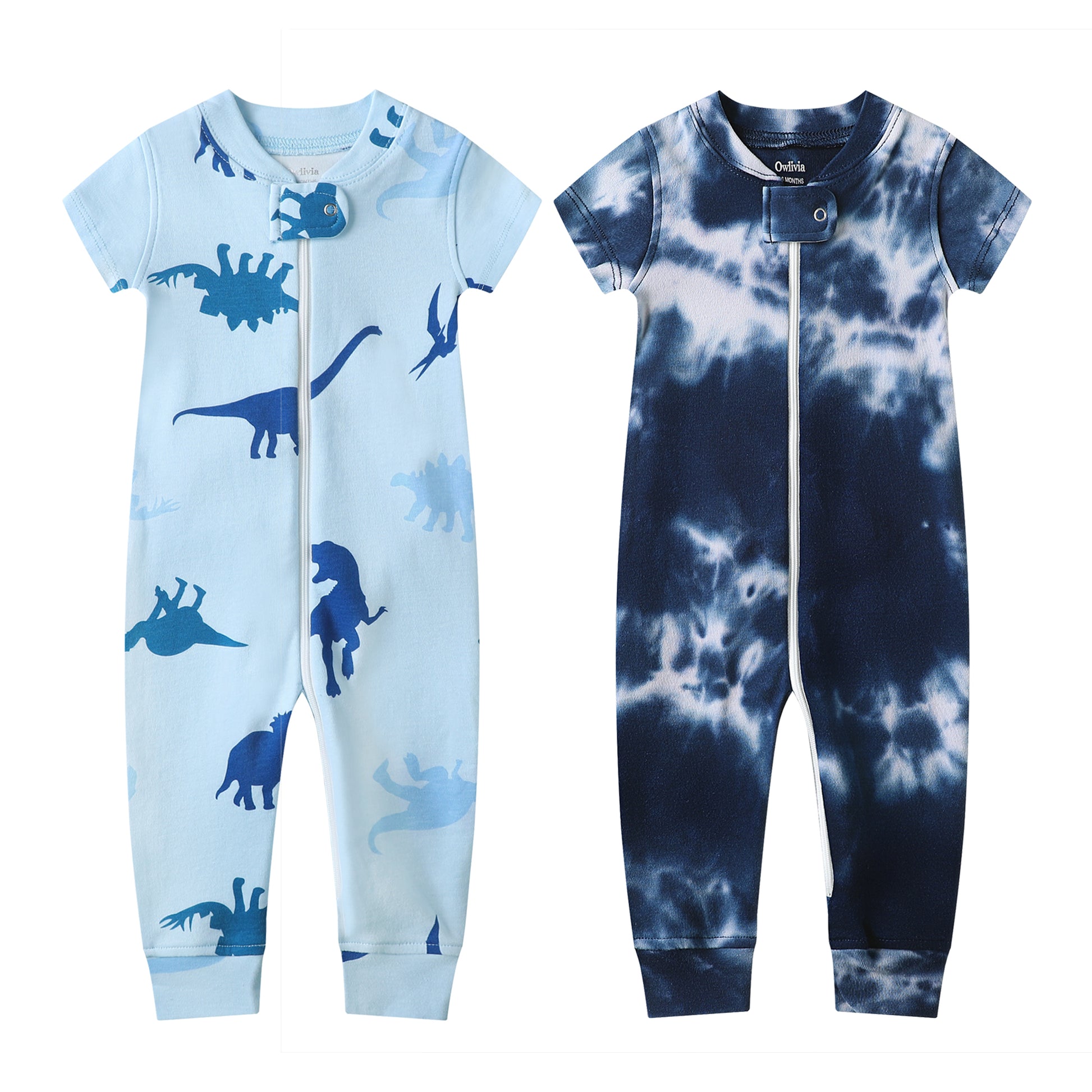 100% Organic Cotton Zip Footless Short Sleeve Pajamas - Blue Dinosaur & Tie Dye Dark Navy