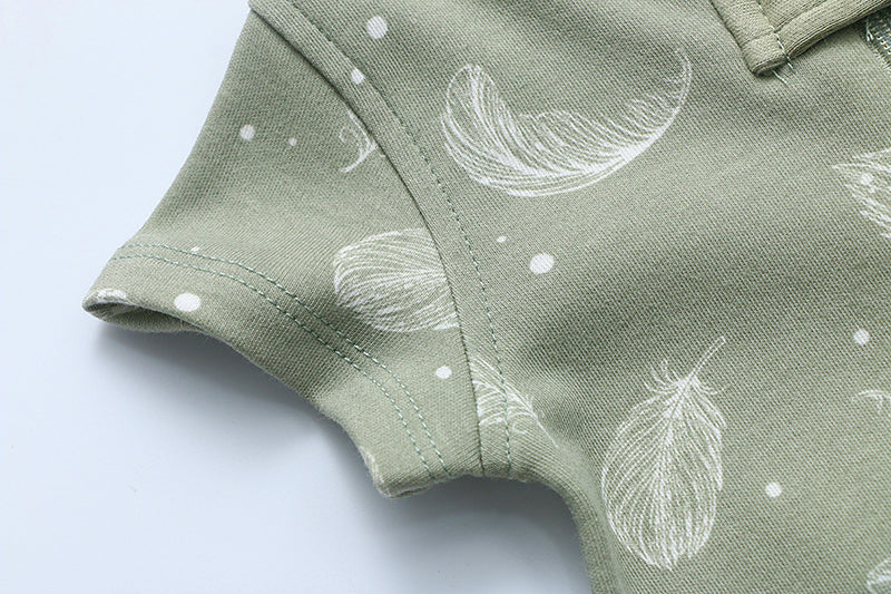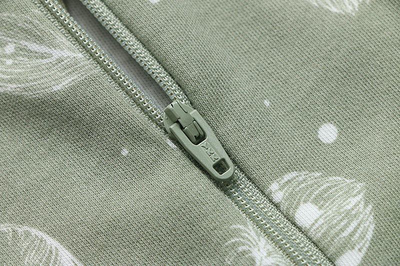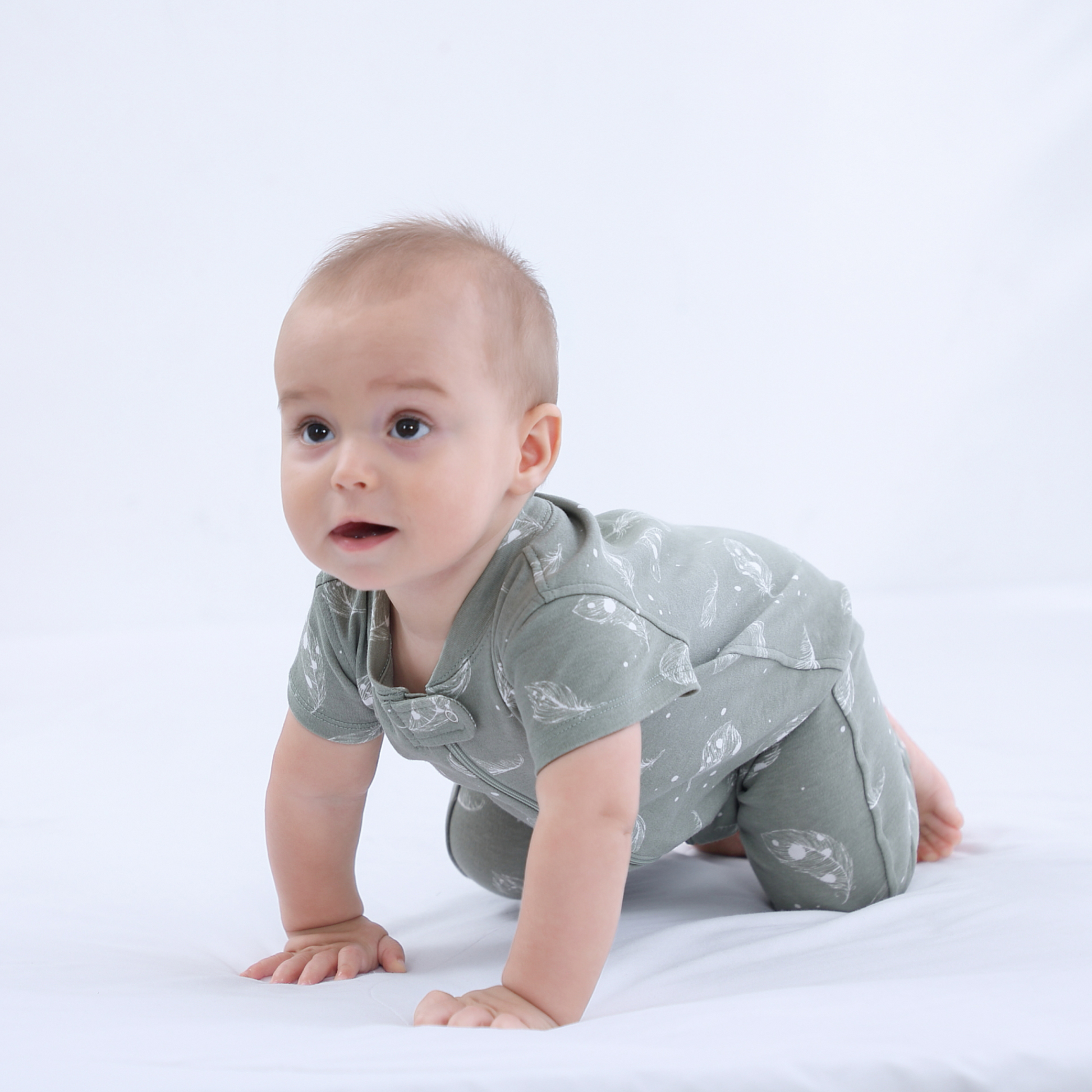 100% Organic Cotton Zip Footless Short Sleeve Pajamas - Feather Green