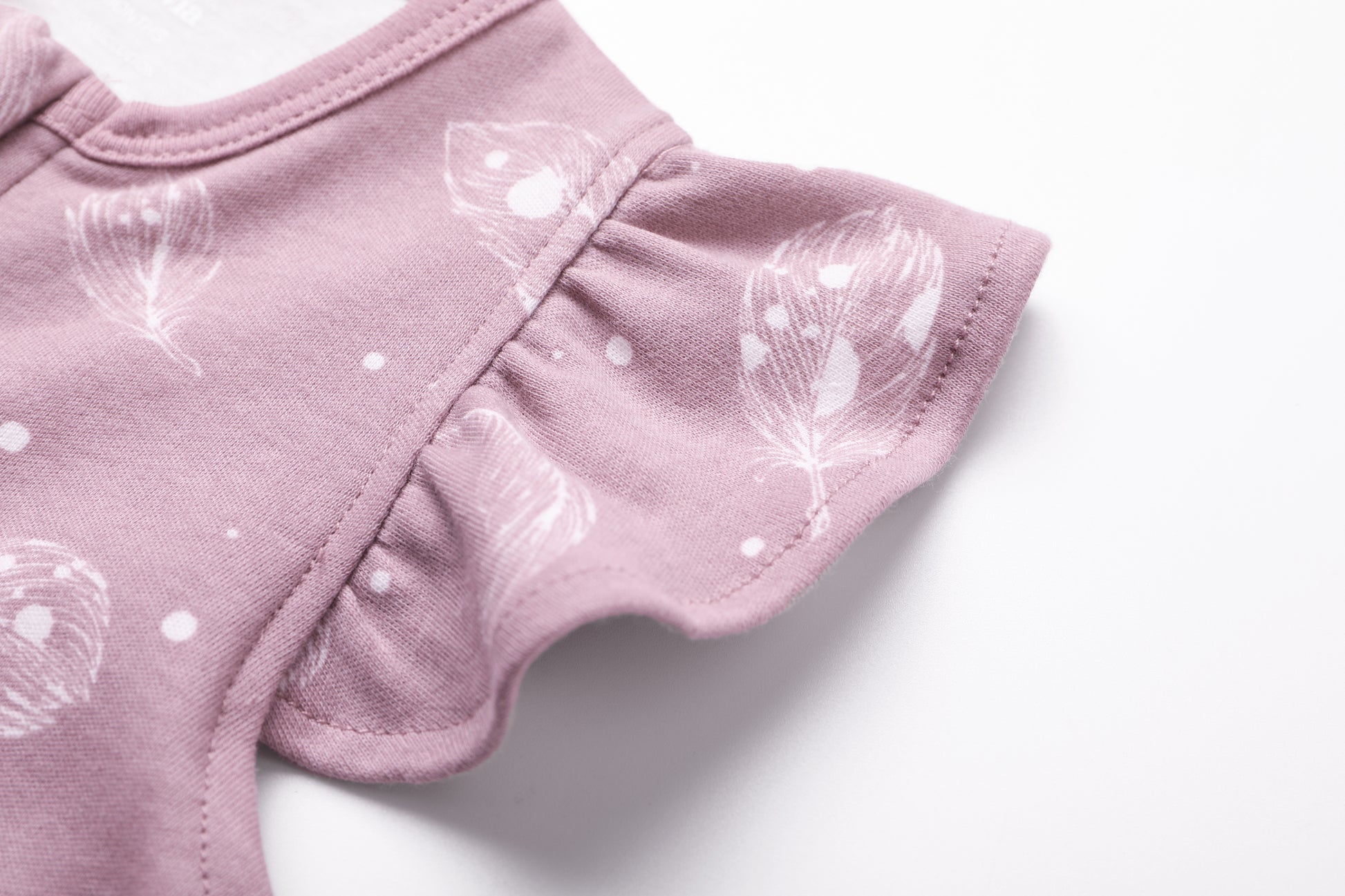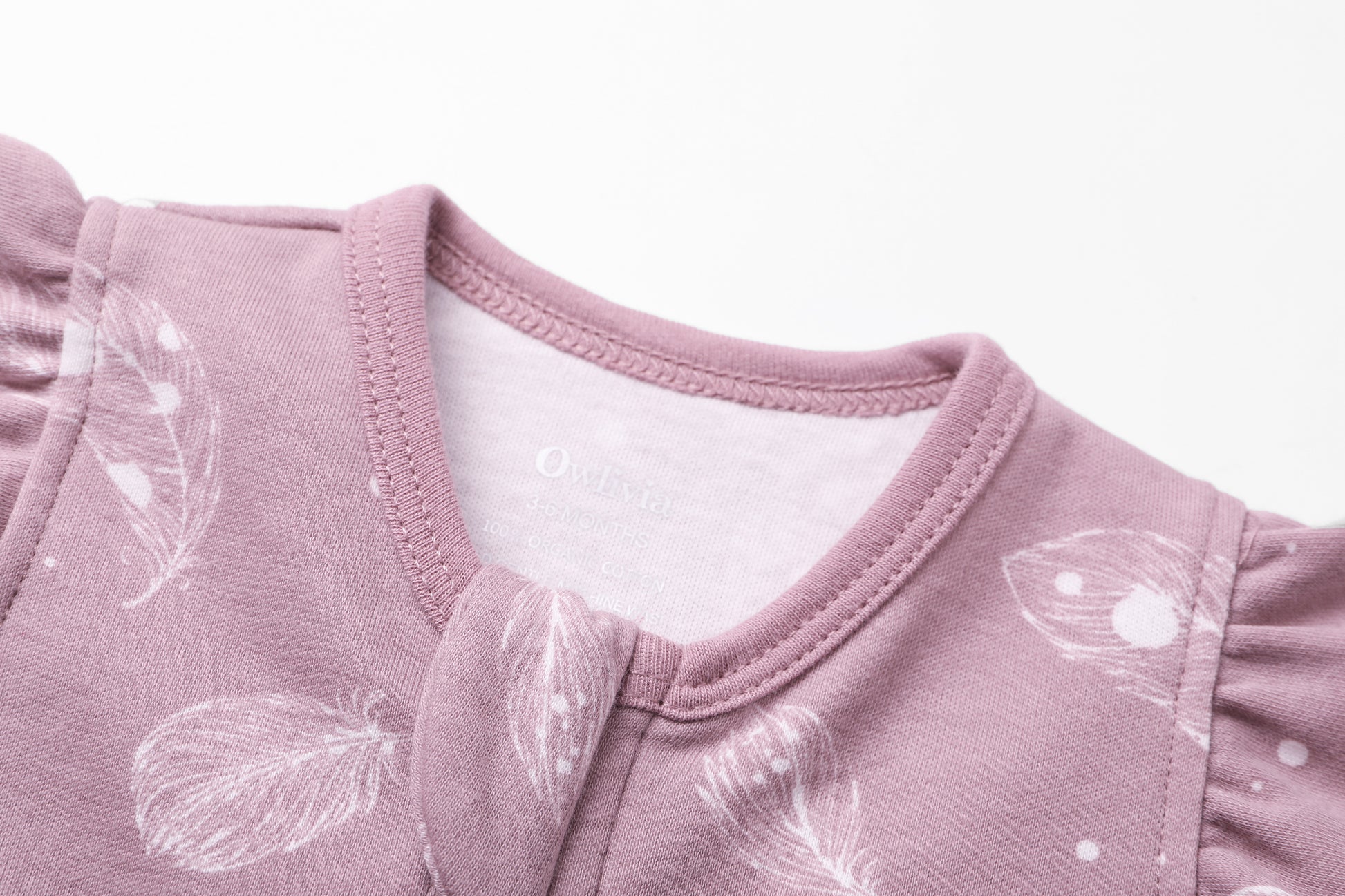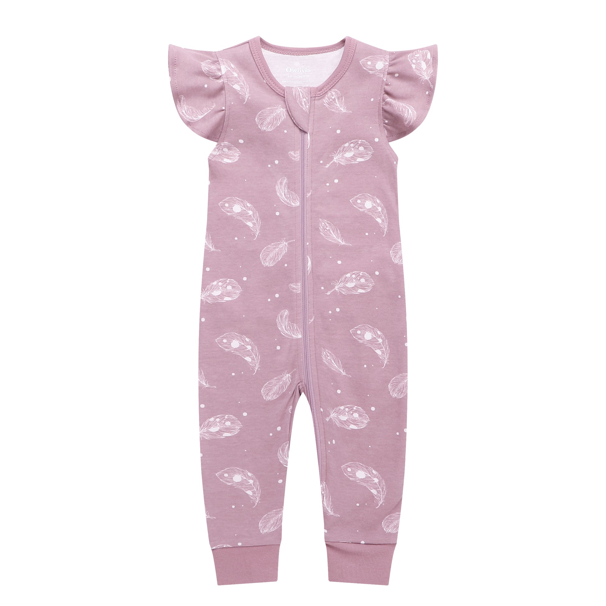 100% Organic Cotton Zip Footless Short Sleeve Pajamas - Ruffle Feather Mauve