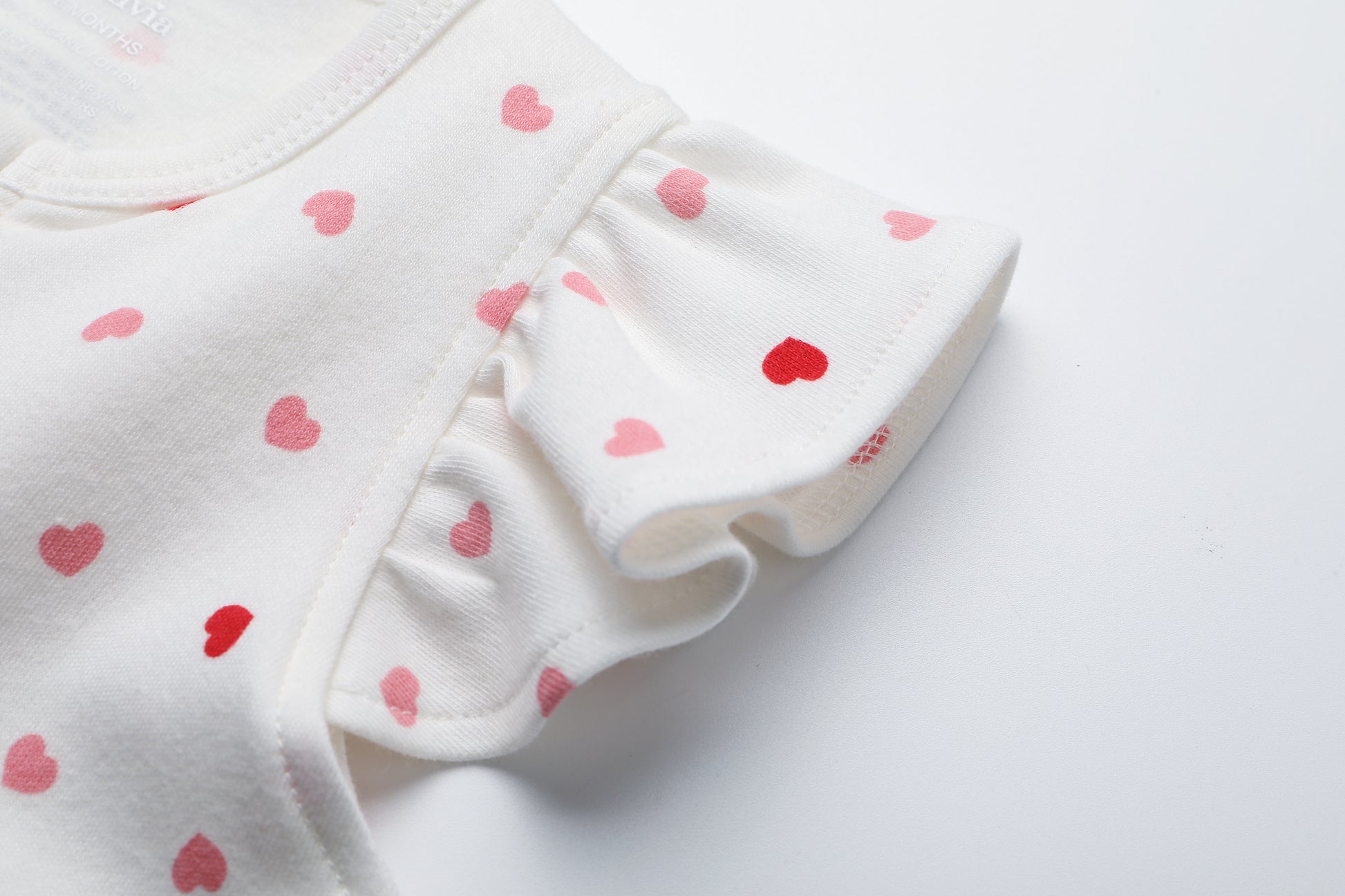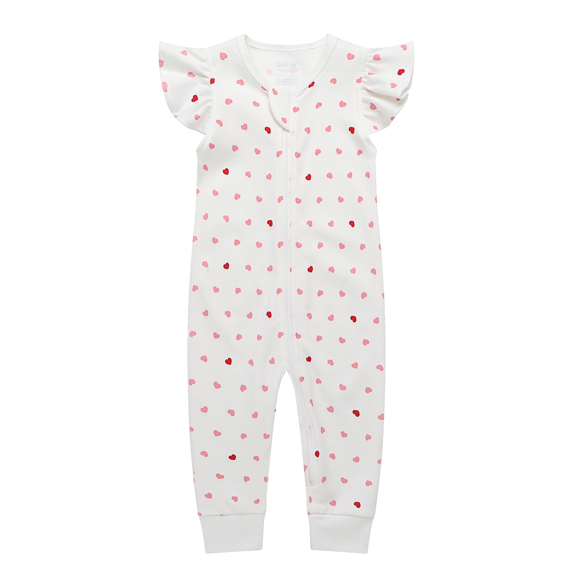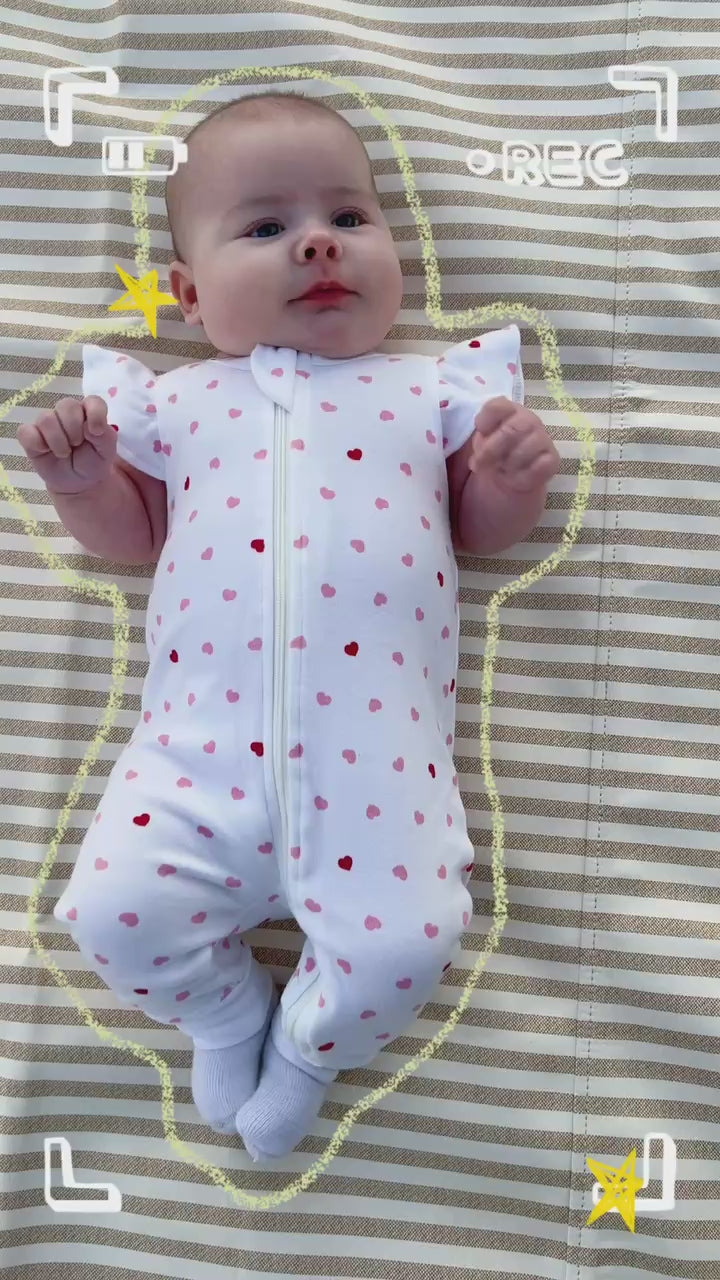 100% Organic Cotton Zip Footless Short Sleeve Pajamas - Ruffle Pink Heart