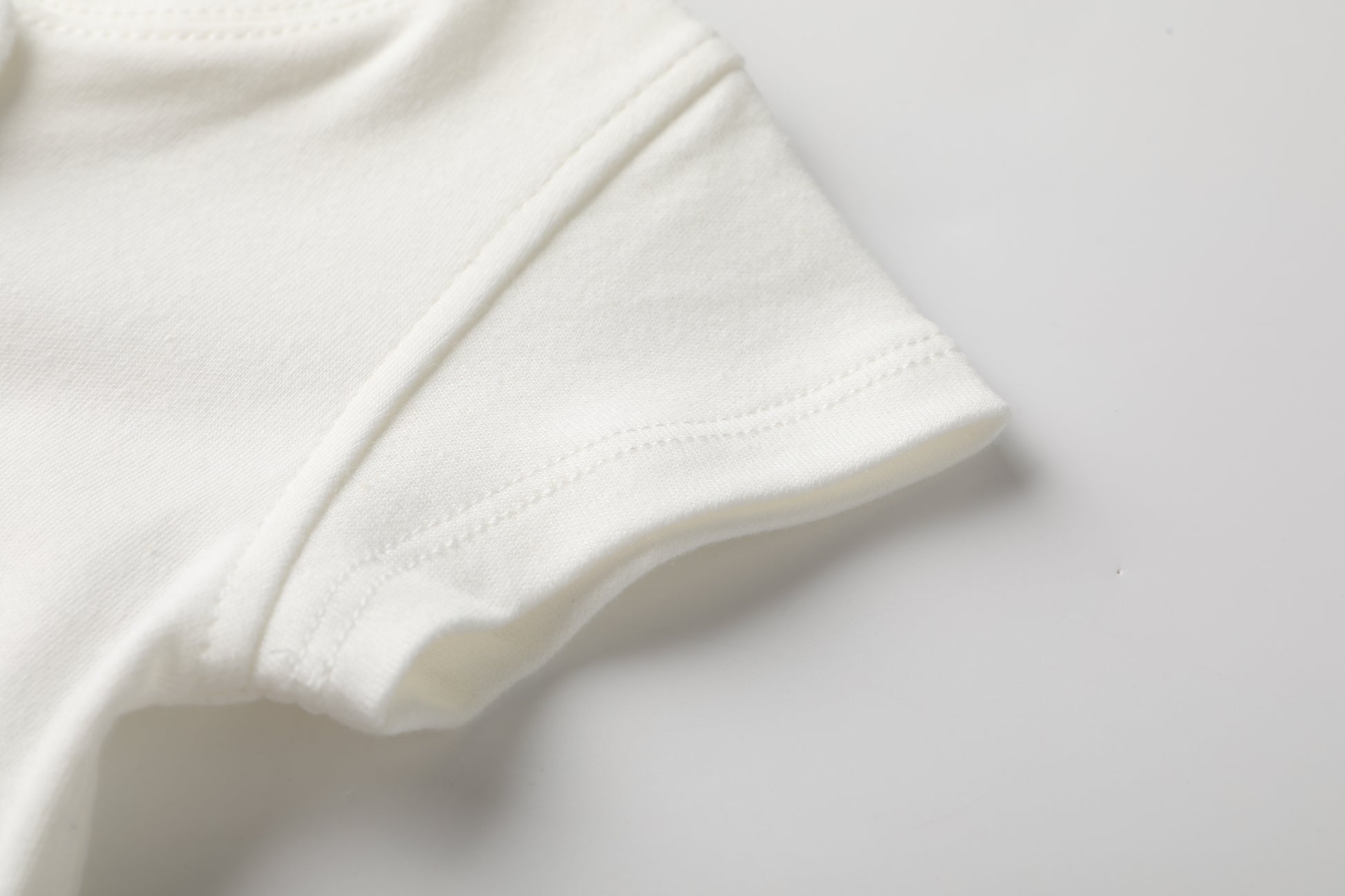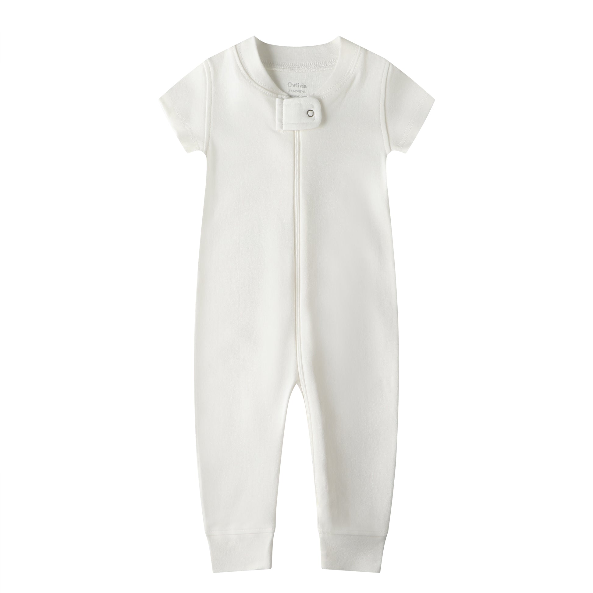 100% Organic Cotton Zip Footless Short Sleeve Pajamas - Short Off - White