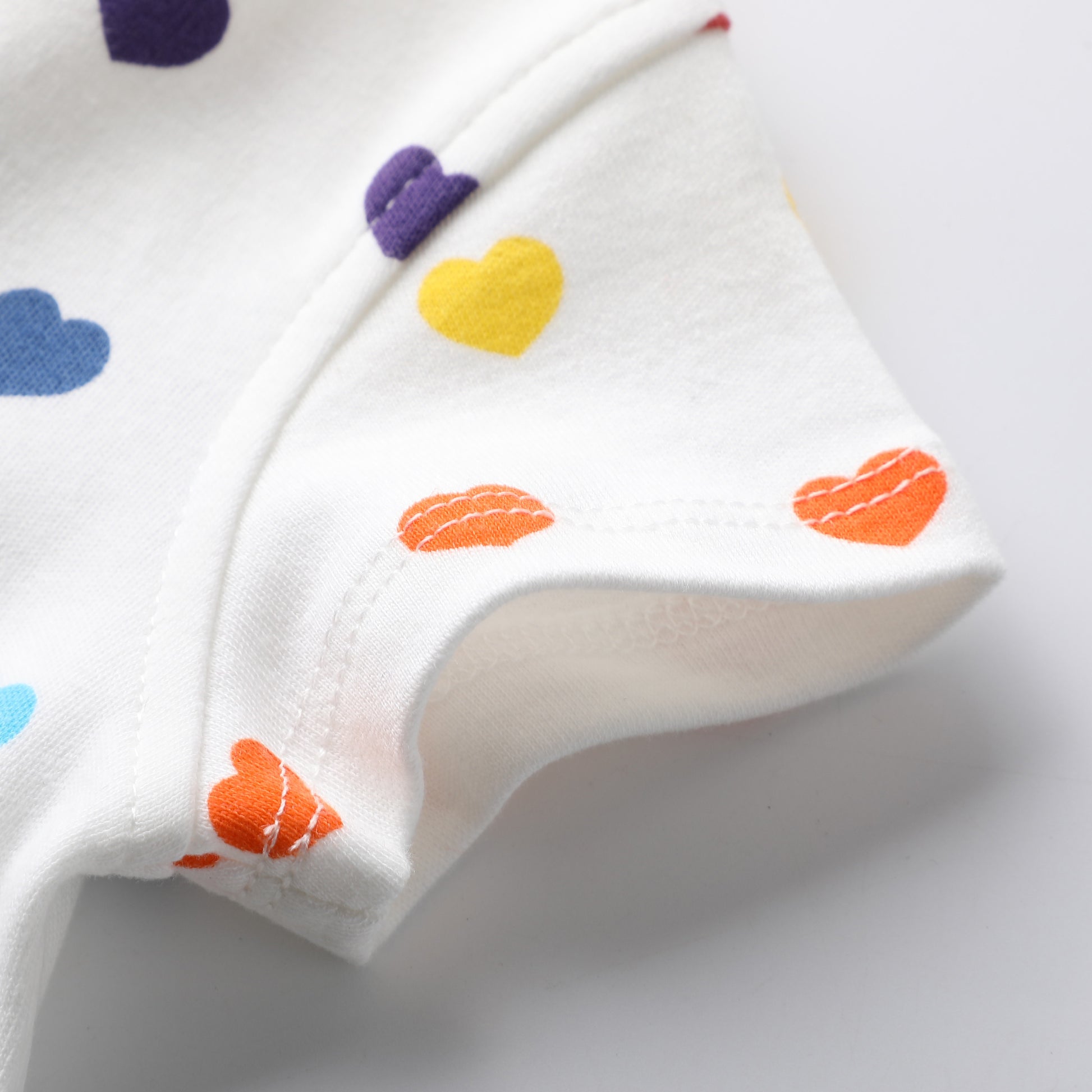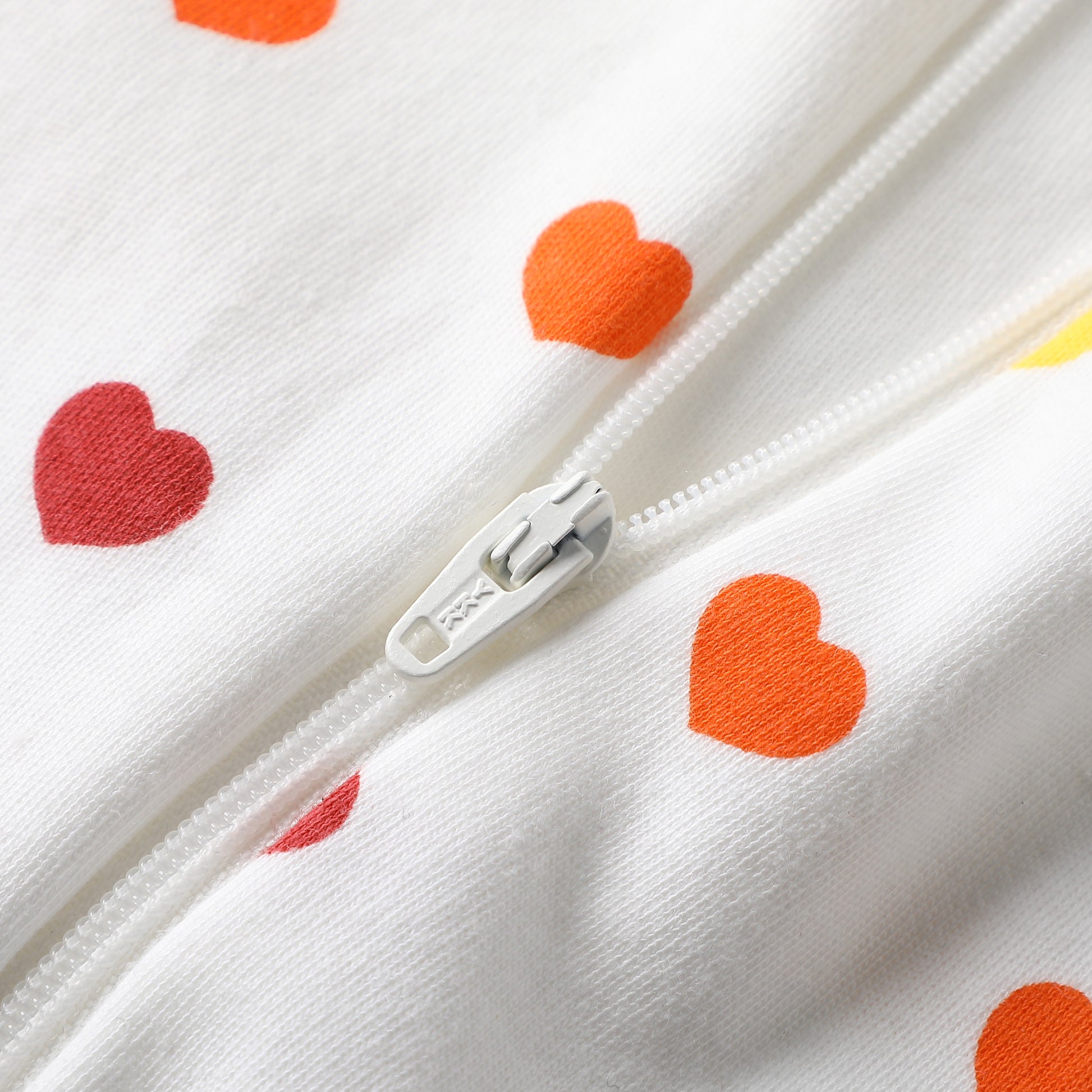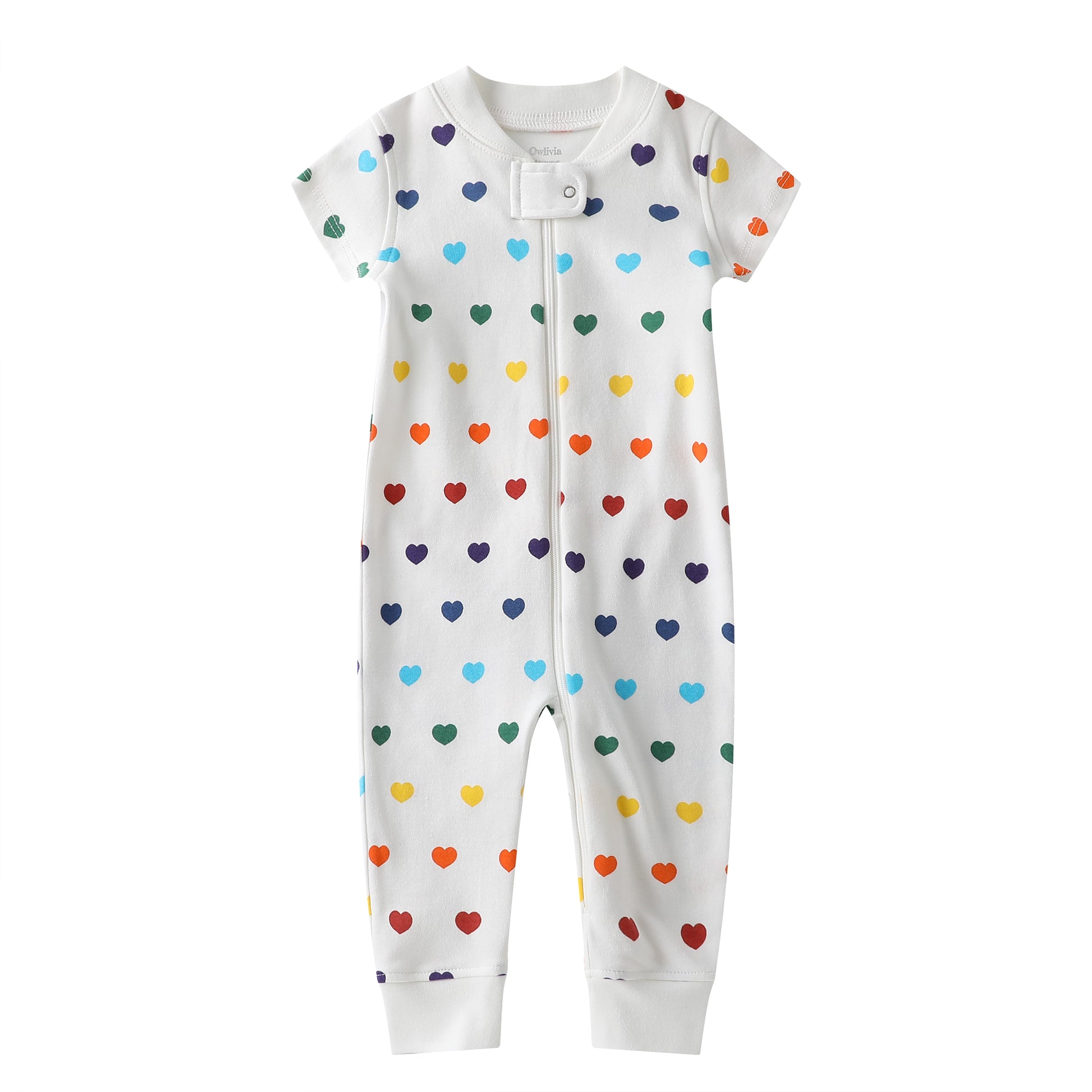 100% Organic Cotton Zip Footless Short Sleeve Pajamas - Short Rainbow Hearts