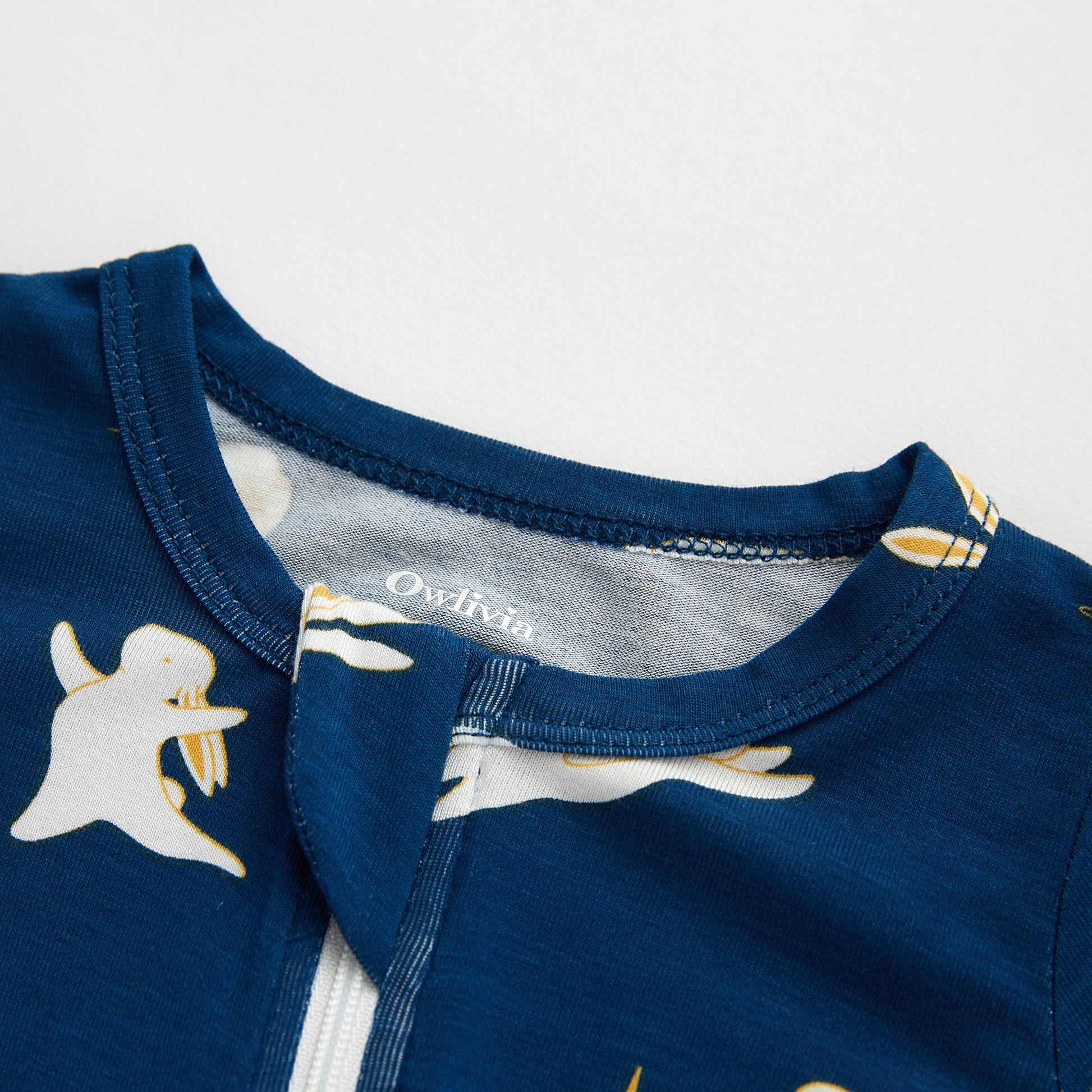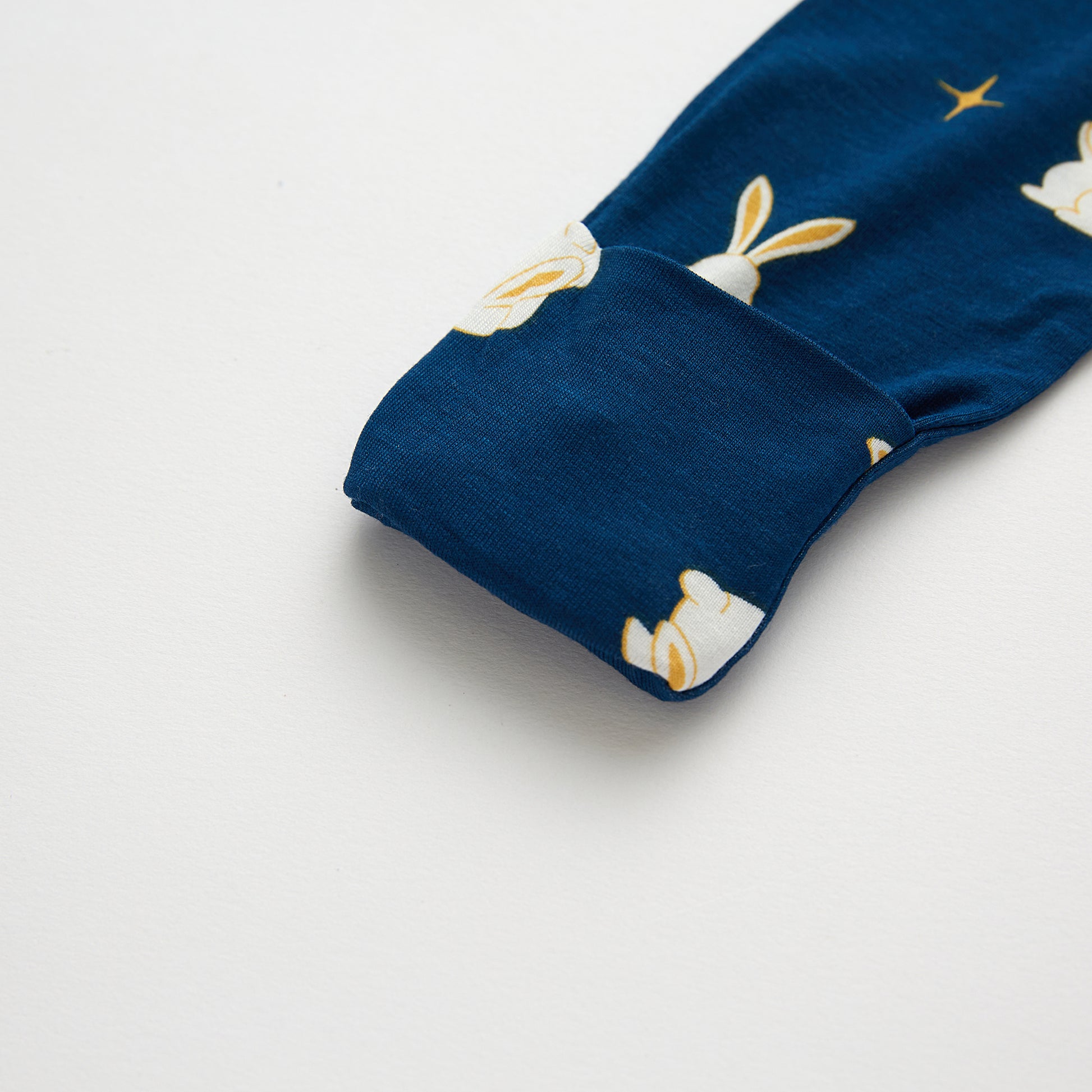 Bamboo Long Sleeve Zip Footed Pajamas - Aqua