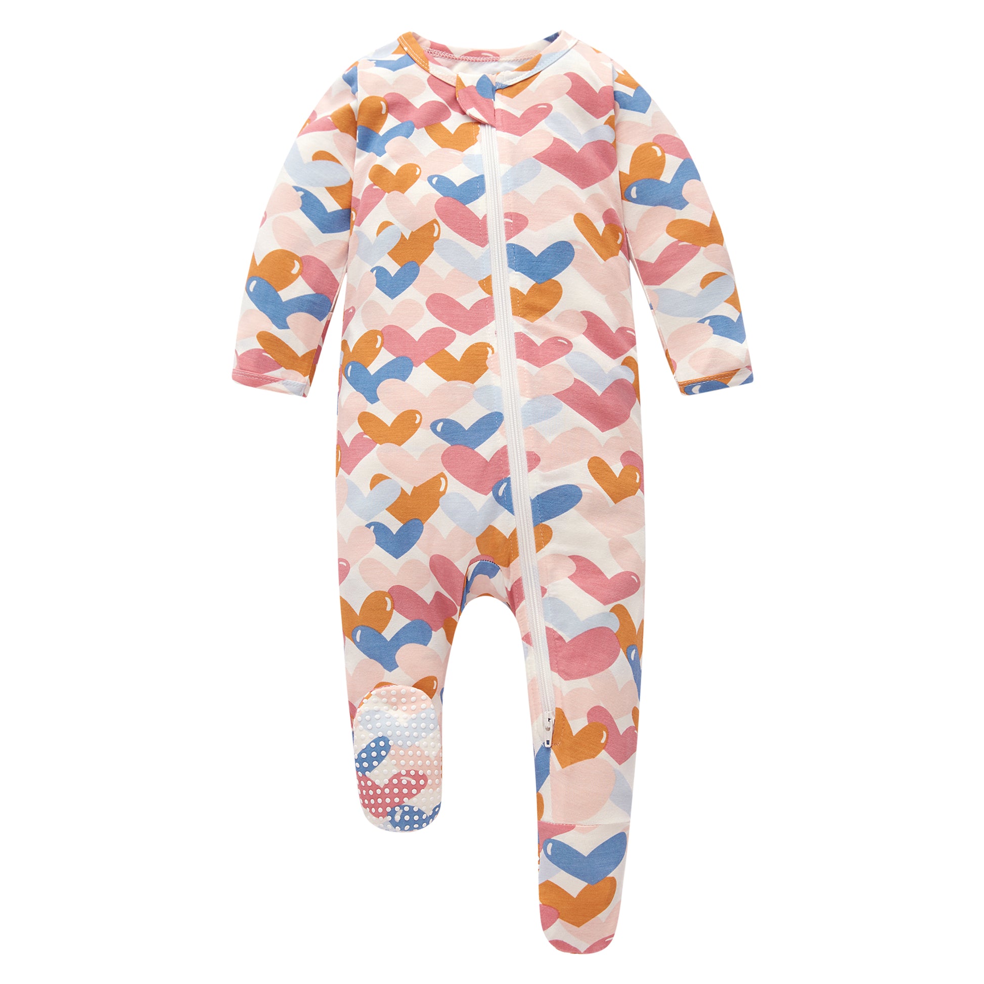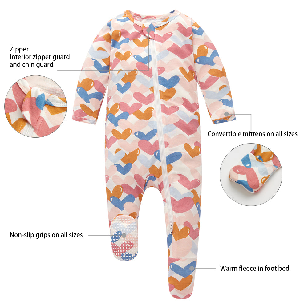 Bamboo Long Sleeve Zip Footed Pajamas - Colorful Heart