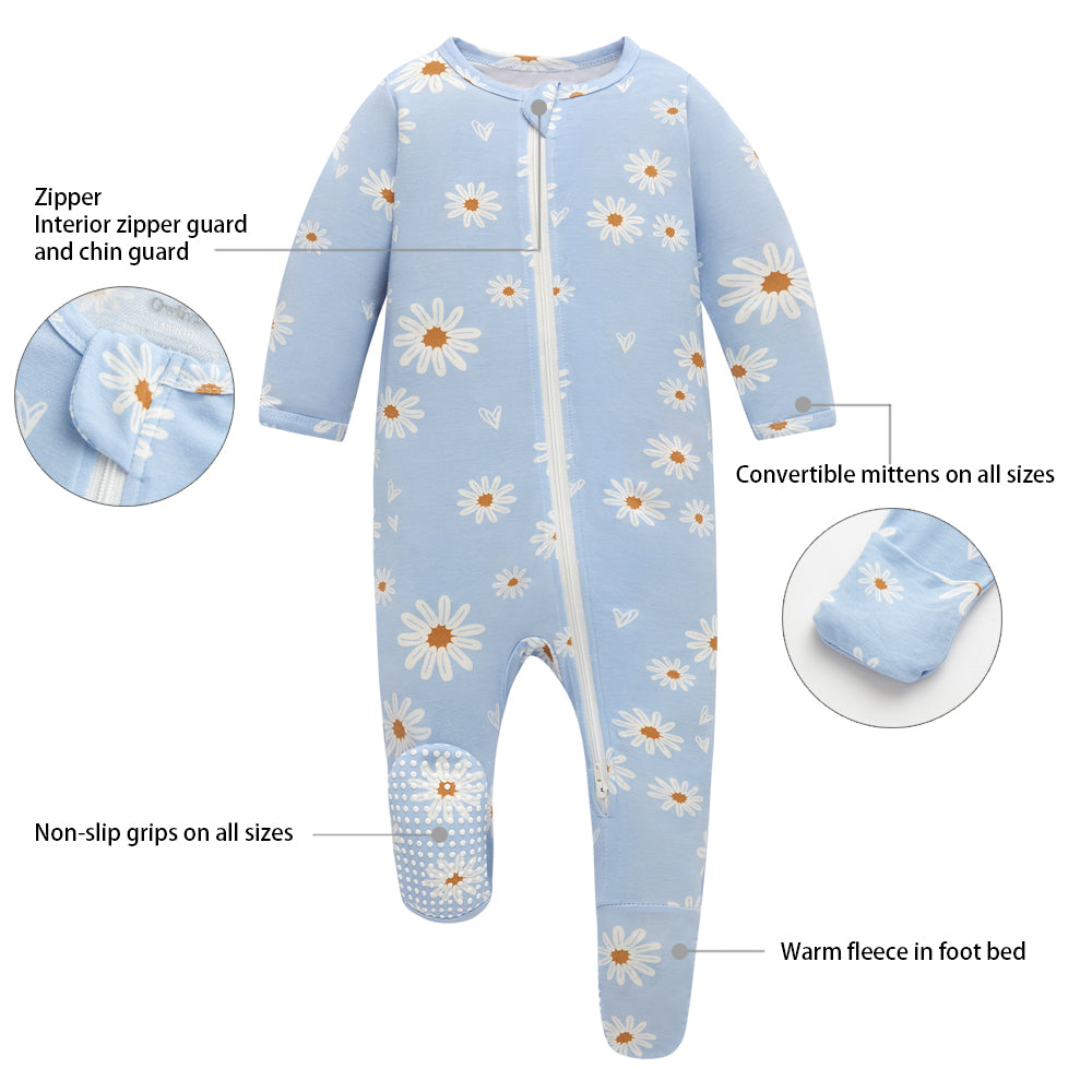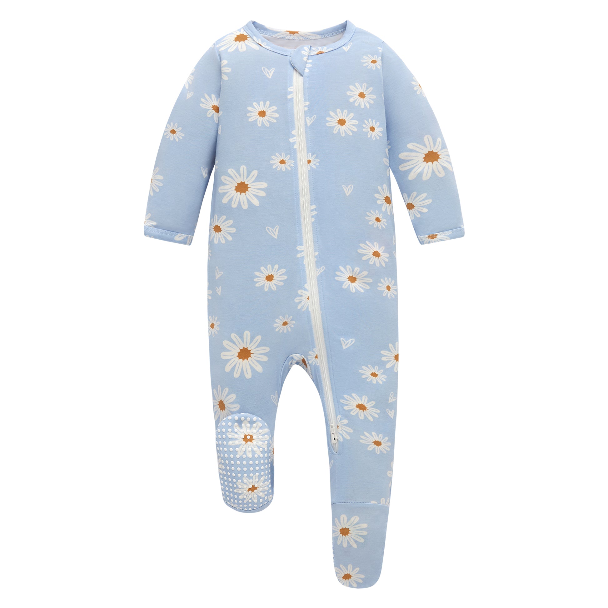 Bamboo Long Sleeve Zip Footed Pajamas - Daisy