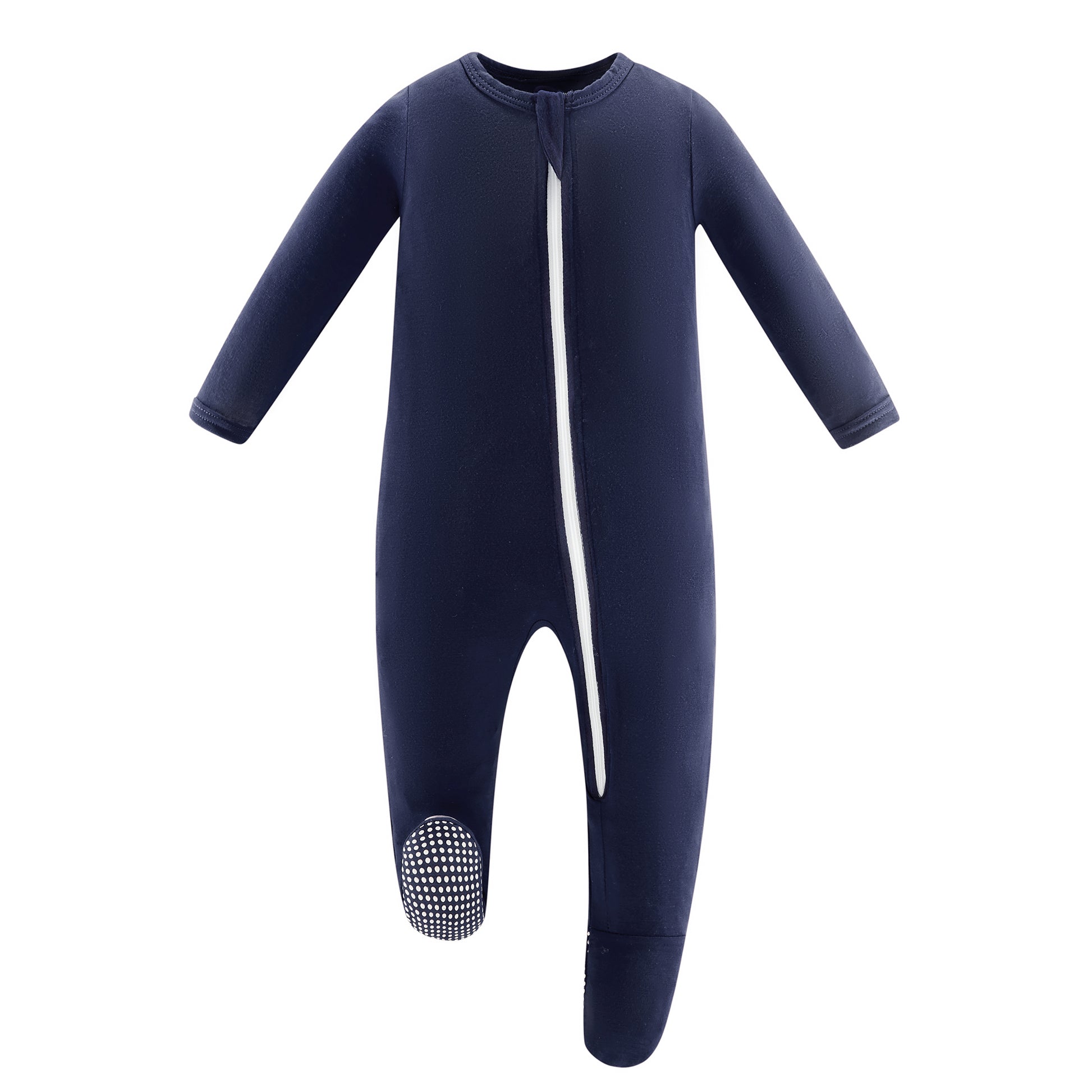 Bamboo Long Sleeve Zip Footed Pajamas - Navy