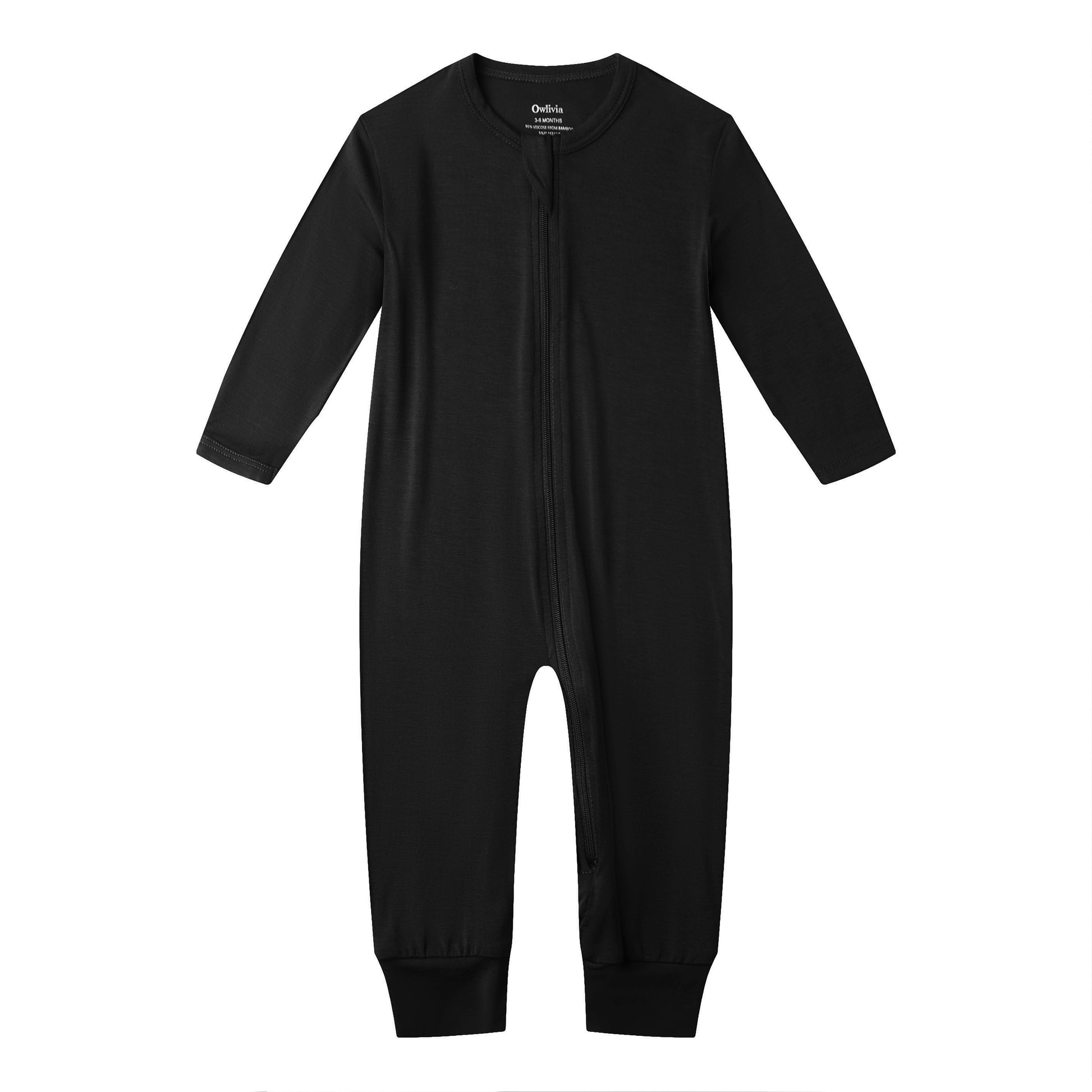 Bamboo Long Sleeve Zip Footless Baby Pajamas - Black