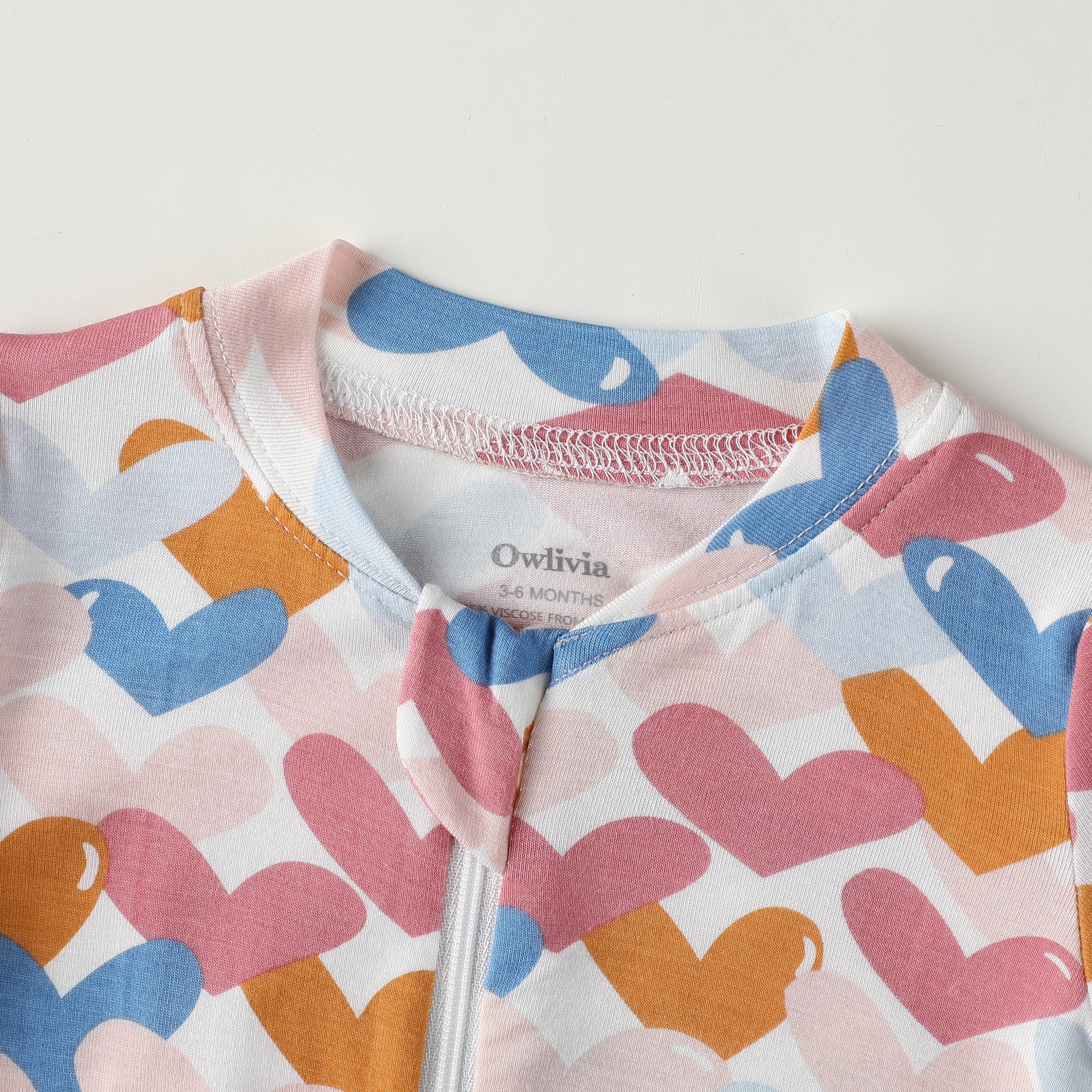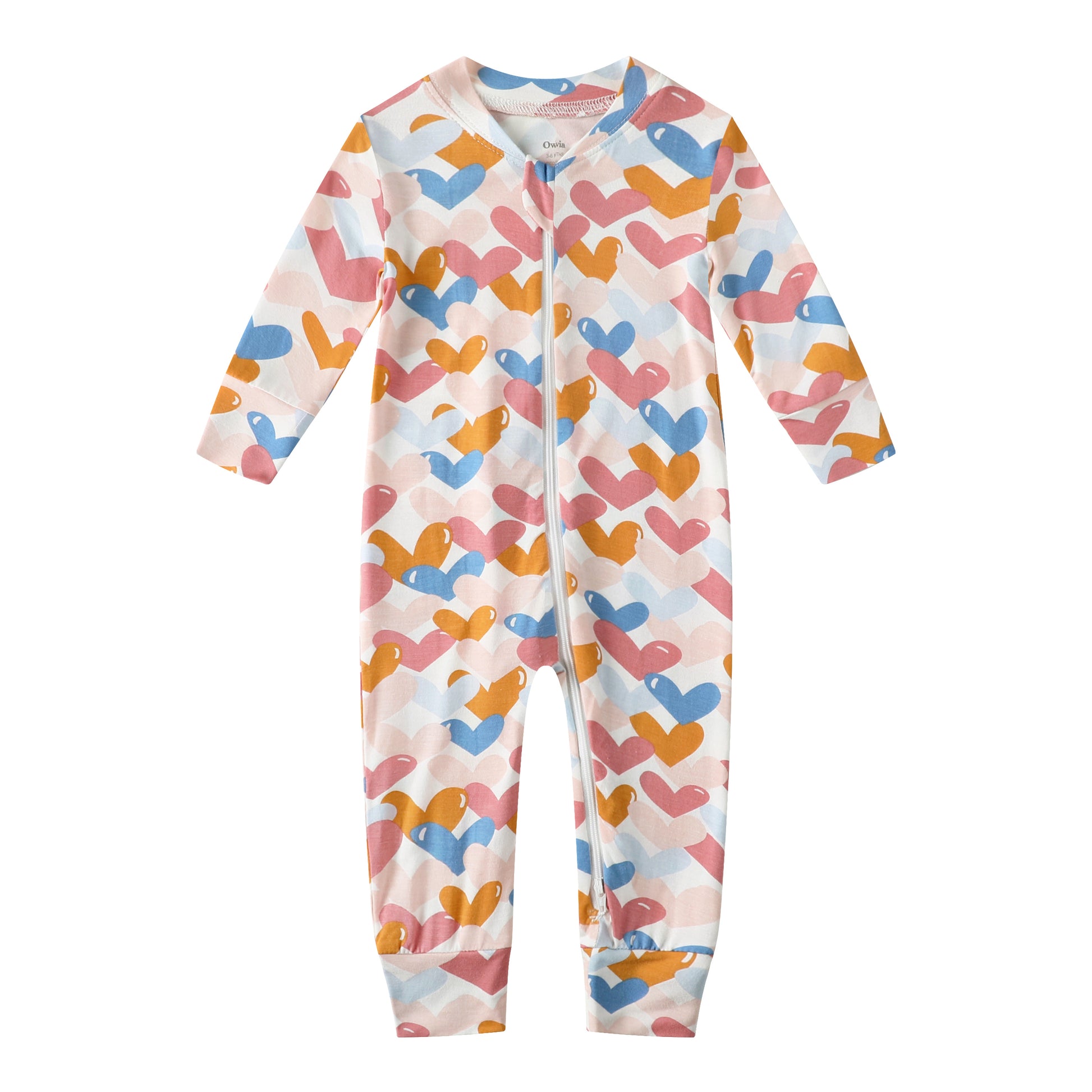 Bamboo Long Sleeve Zip Footless Baby Pajamas - Colorful Heart