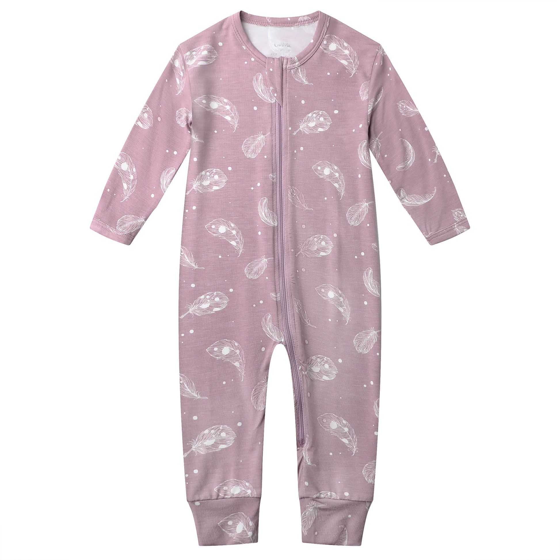 Bamboo Long Sleeve Zip Footless Baby Pajamas - Feather Mauve