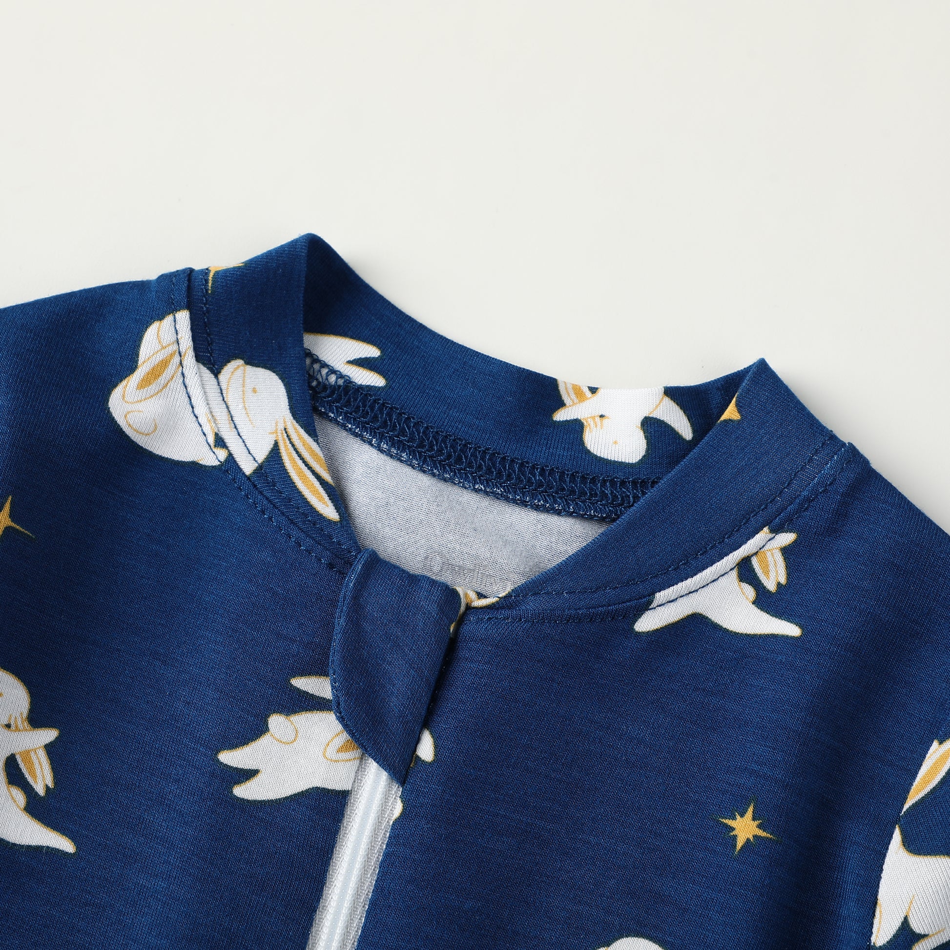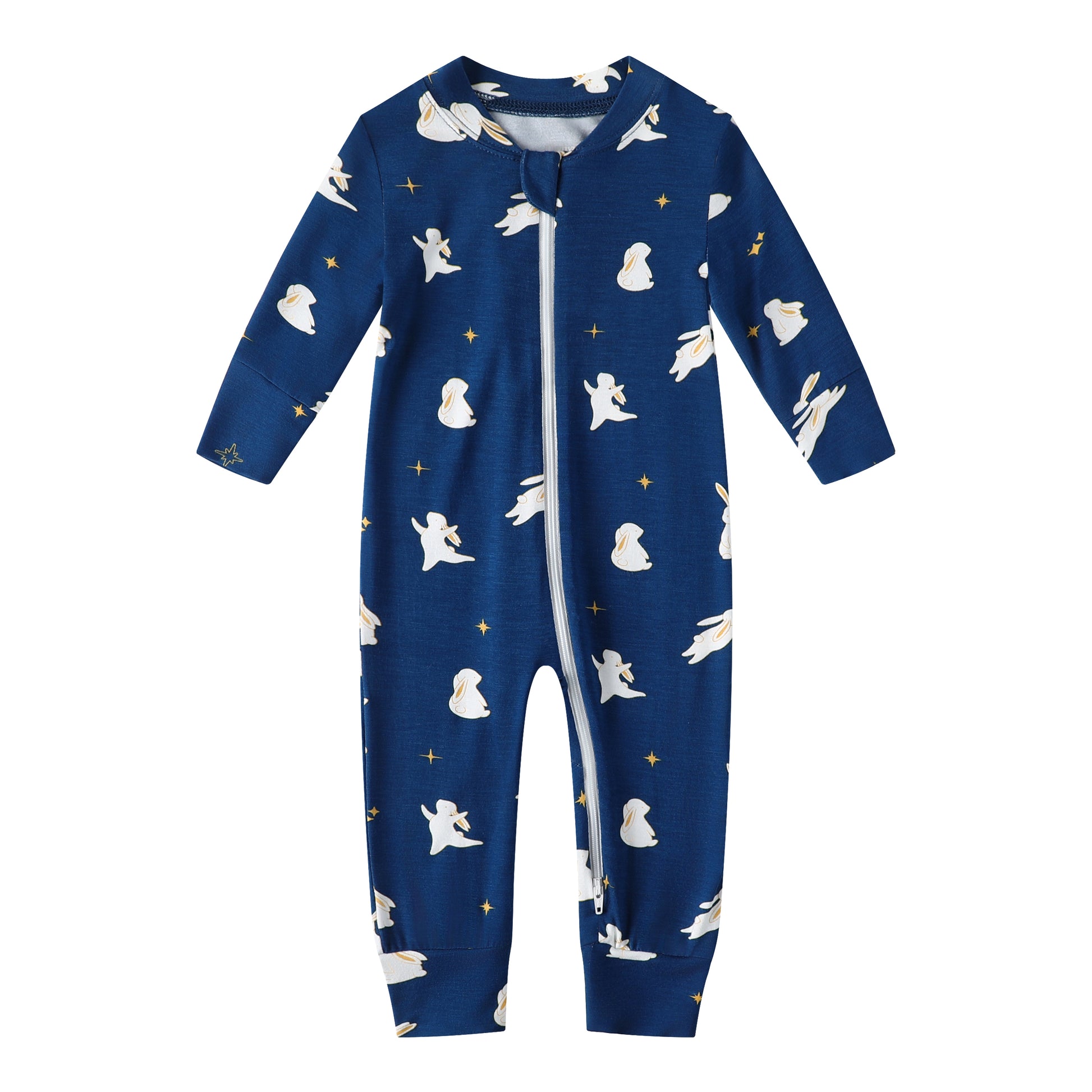 Bamboo Long Sleeve Zip Footless Baby Pajamas - Moon Bunny
