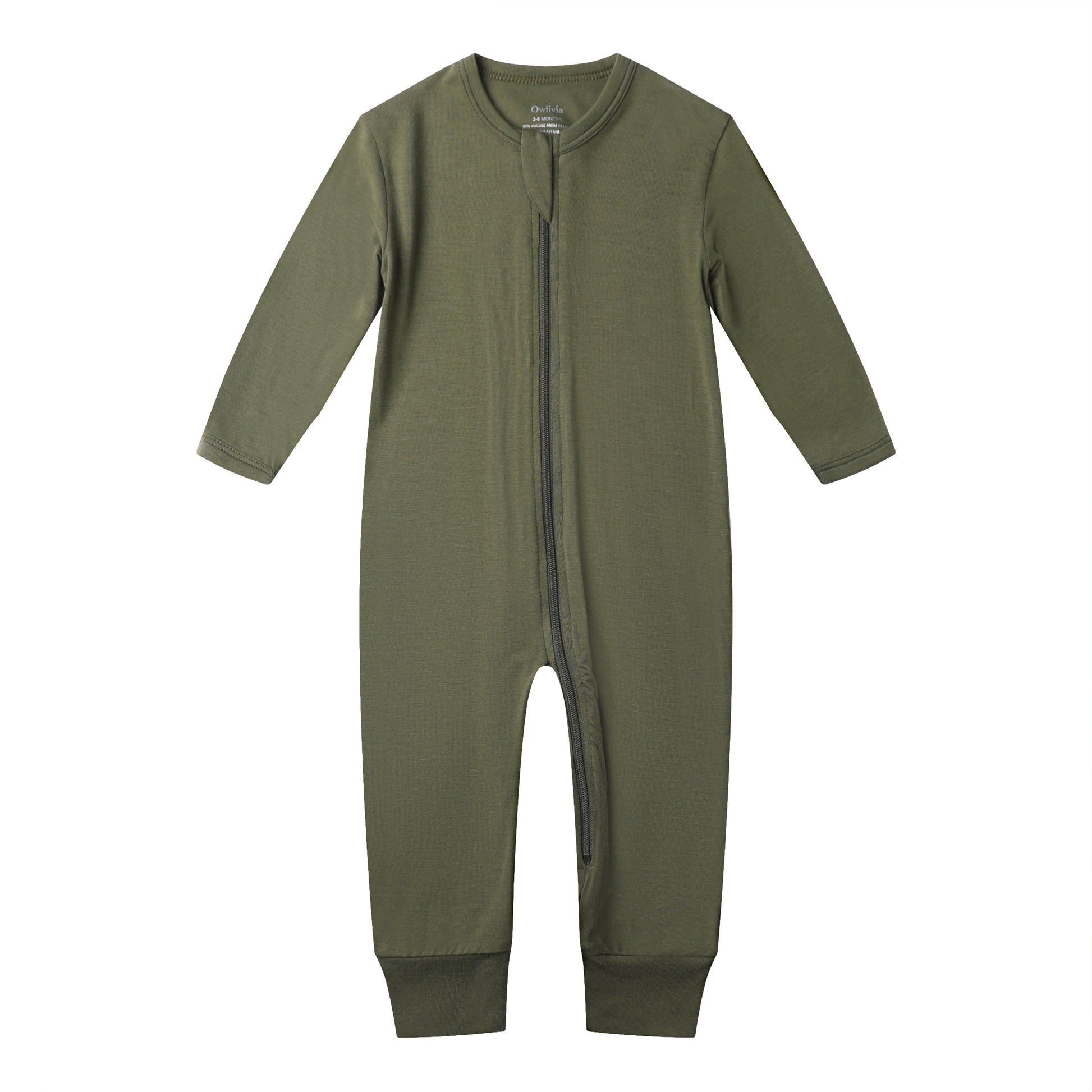 Bamboo Long Sleeve Zip Footless Baby Pajamas - Olive