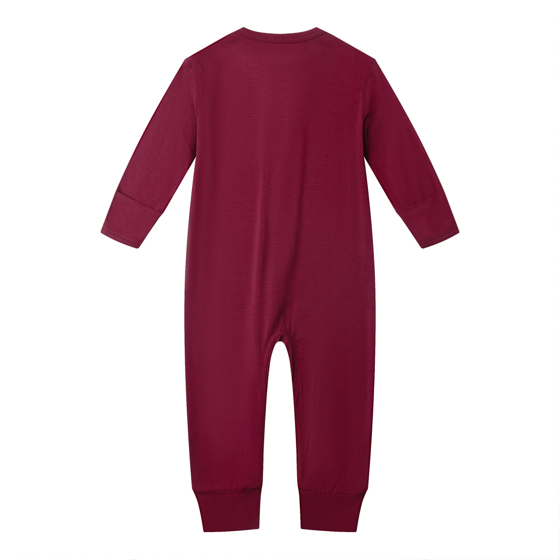 Bamboo Long Sleeve Zip Footless Baby Pajamas - Wine Red