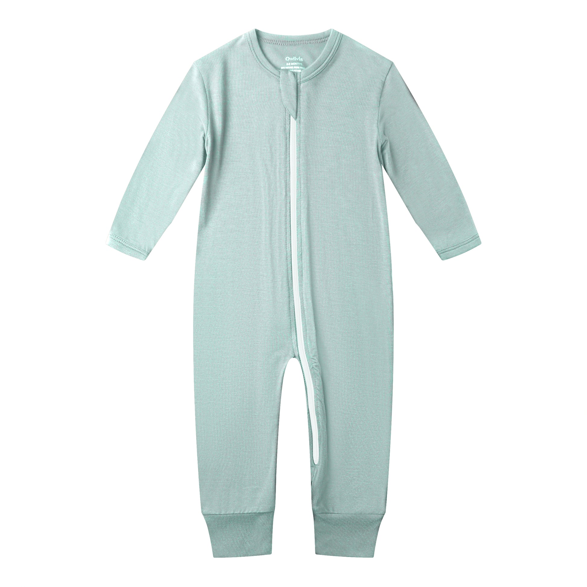 Bamboo Long Sleeve Zip Footless Baby Pajamas - Seafoam