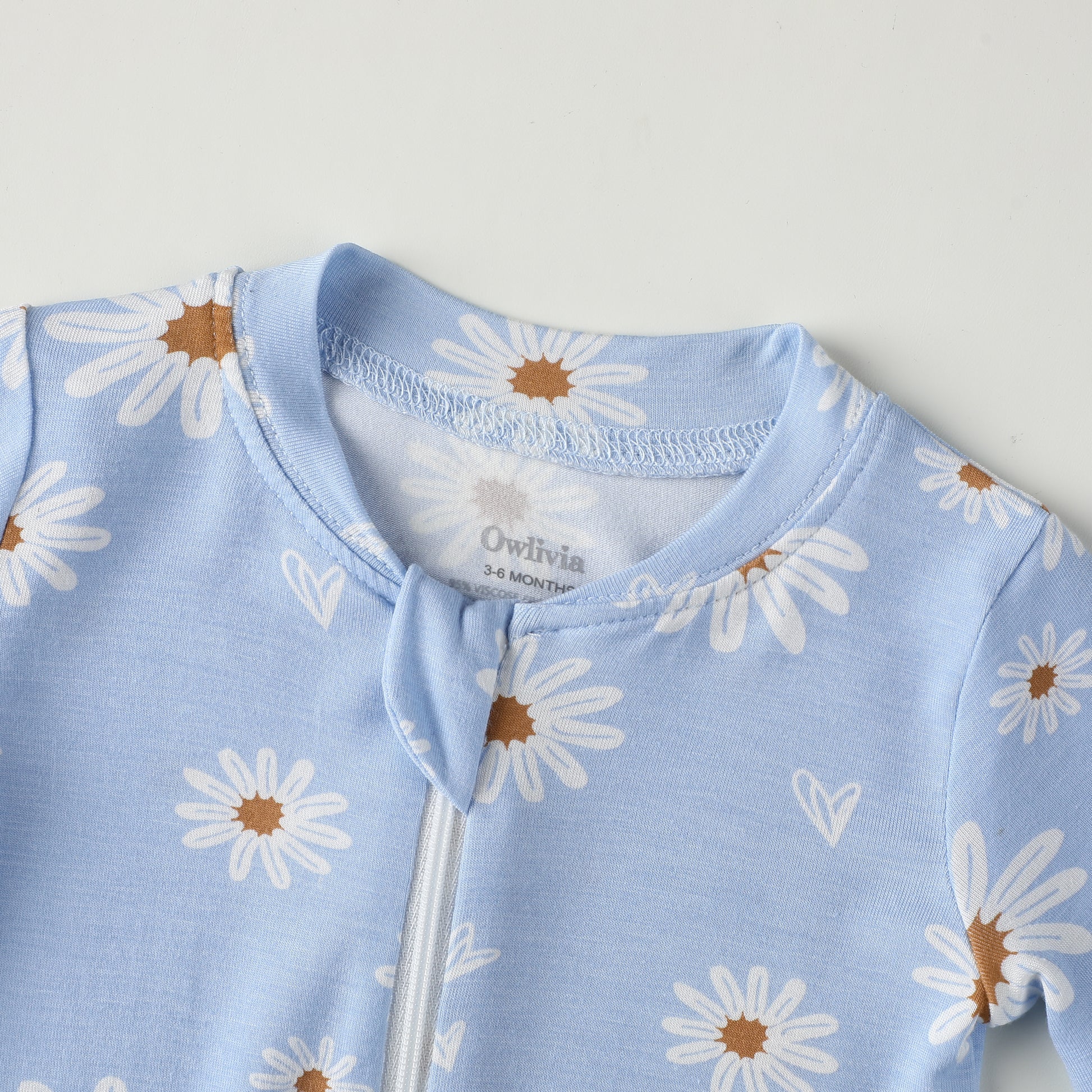 Bamboo Viscose Long Sleeve Zip Footless Baby Pajamas - Daisy