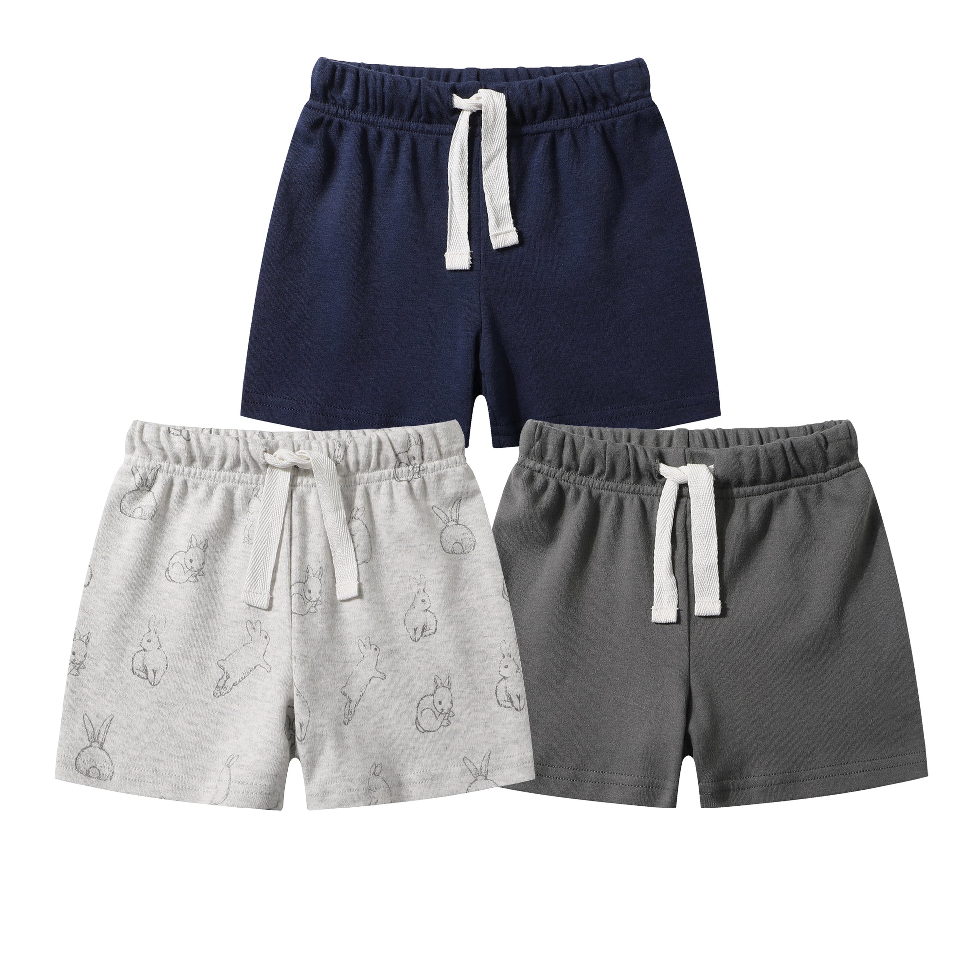 Organic Cotton Baby Shorts Toddler Summer Shorts - Gray & Navy & Grey Rabbit