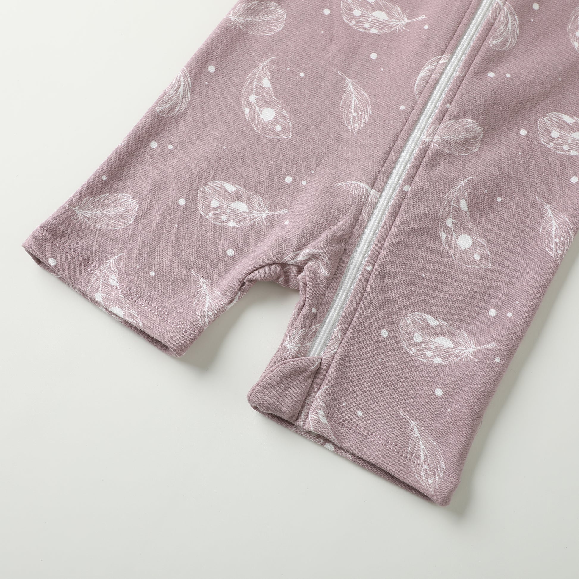 Owlivia Baby Short-Sleeve Summer Romper Set 2-Pack Tank Romper Jumpsuit for Girls and Boys(Feather Mauve & Dark Grey Melange)