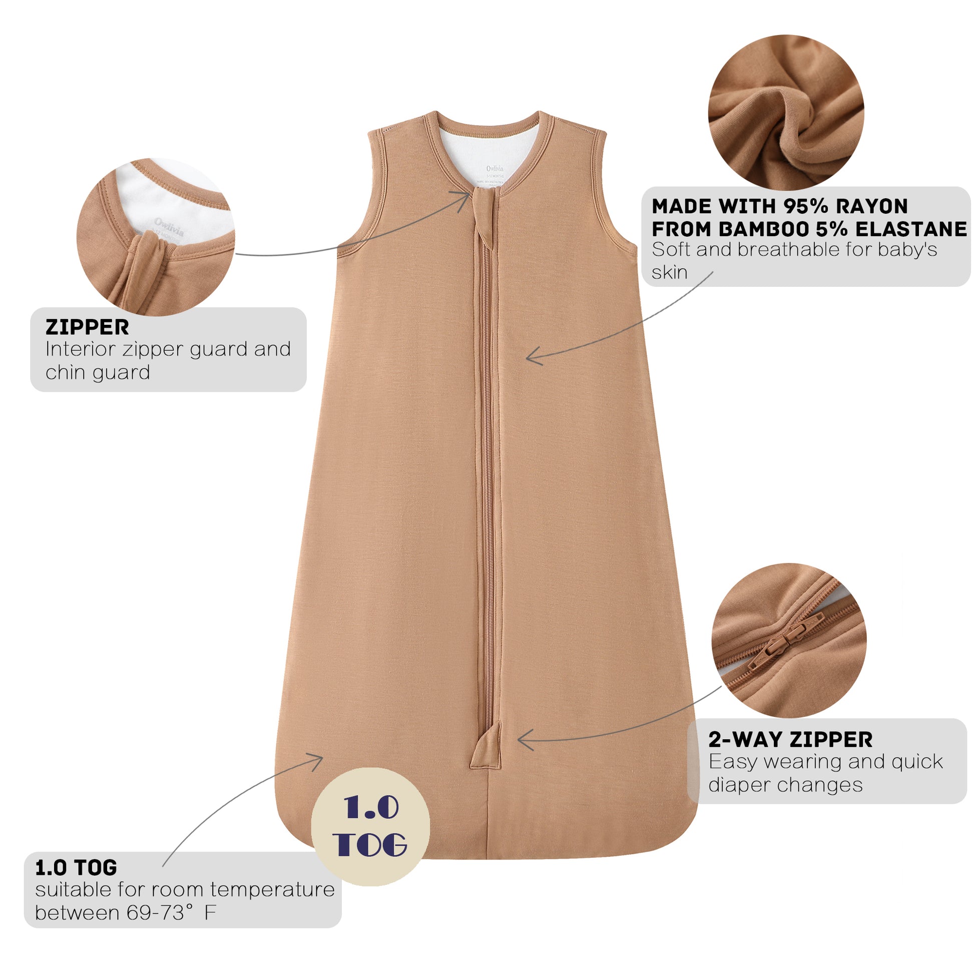 Owlivia Bamboo Rayon Baby Sleep Sack Unisex Sleeping Bag 1.0 TOG -Camel