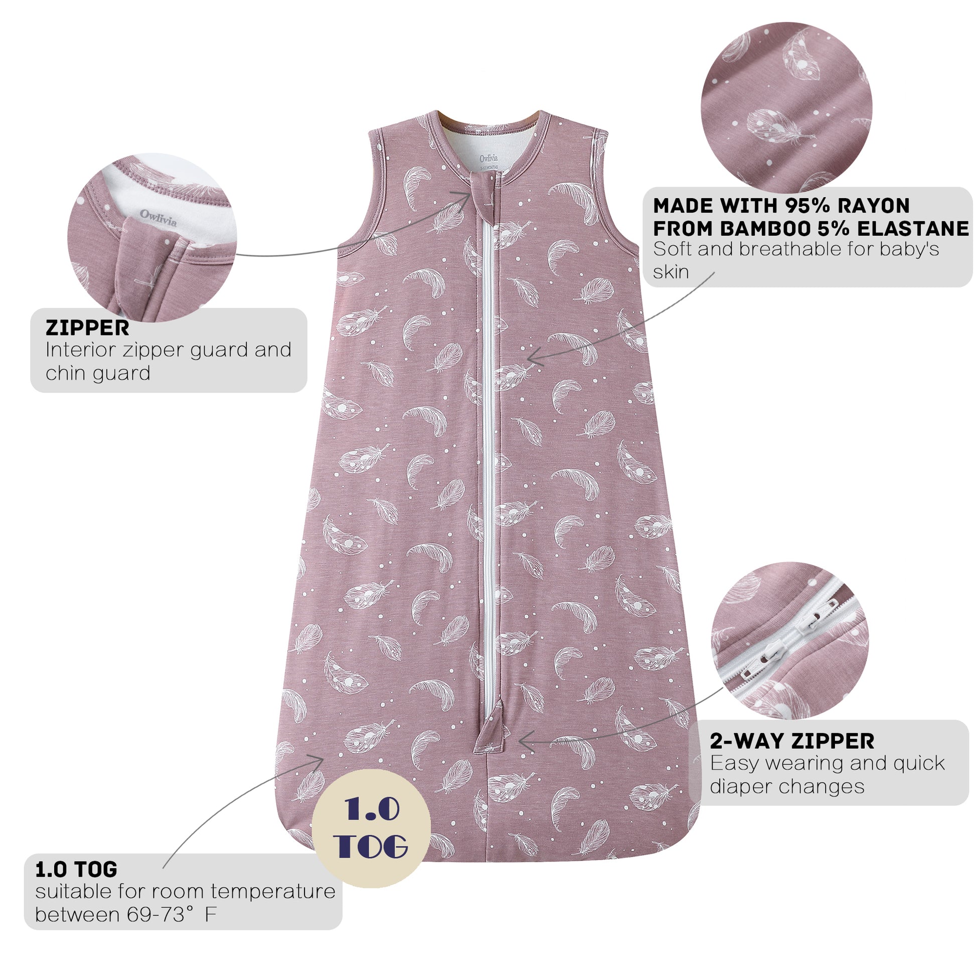 Owlivia Bamboo Rayon Baby Sleep Sack Unisex Sleeping Bag 1.0 TOG -Feather Mauve