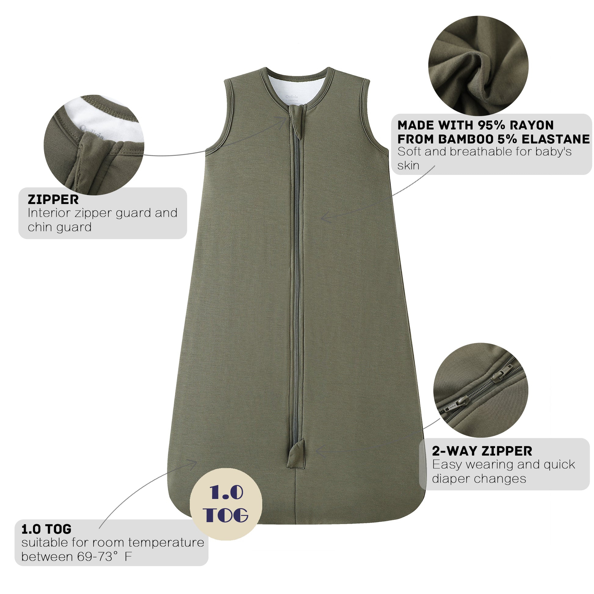 Owlivia Bamboo Rayon Baby Sleep Sack Unisex Sleeping Bag 1.0 TOG - Olive